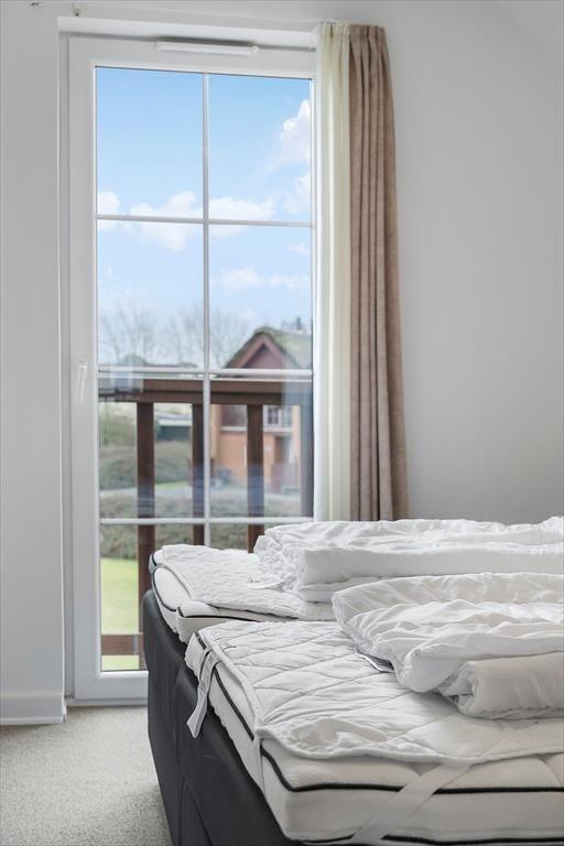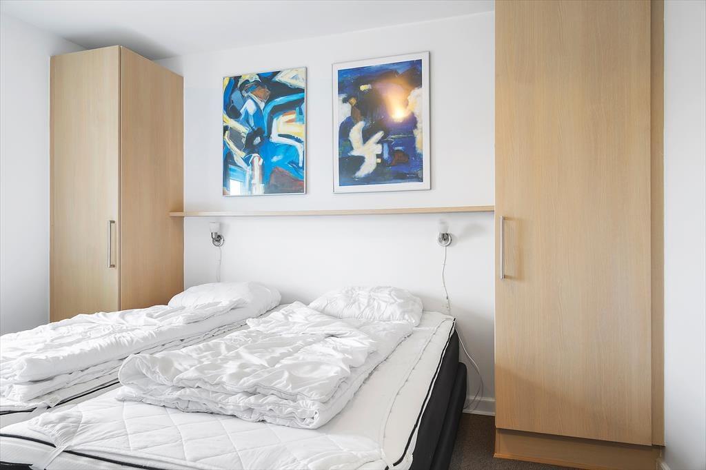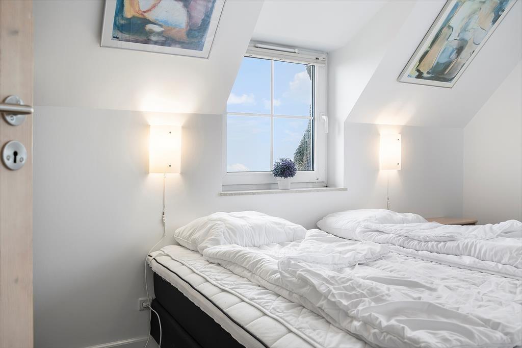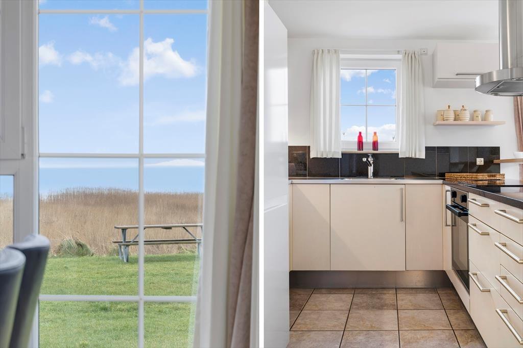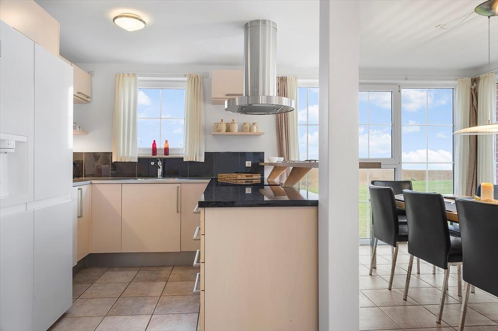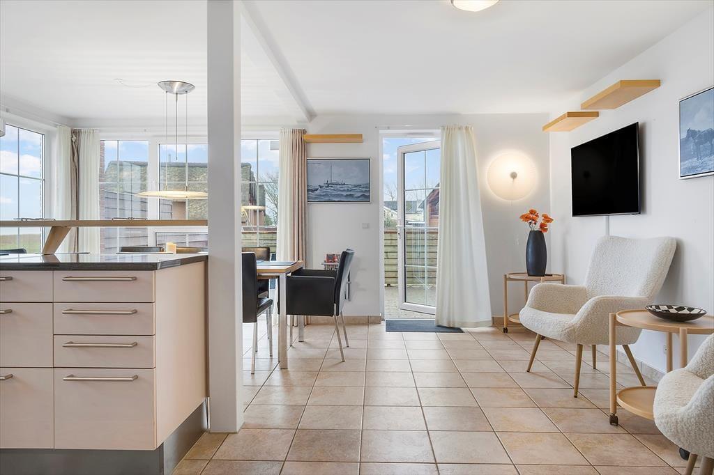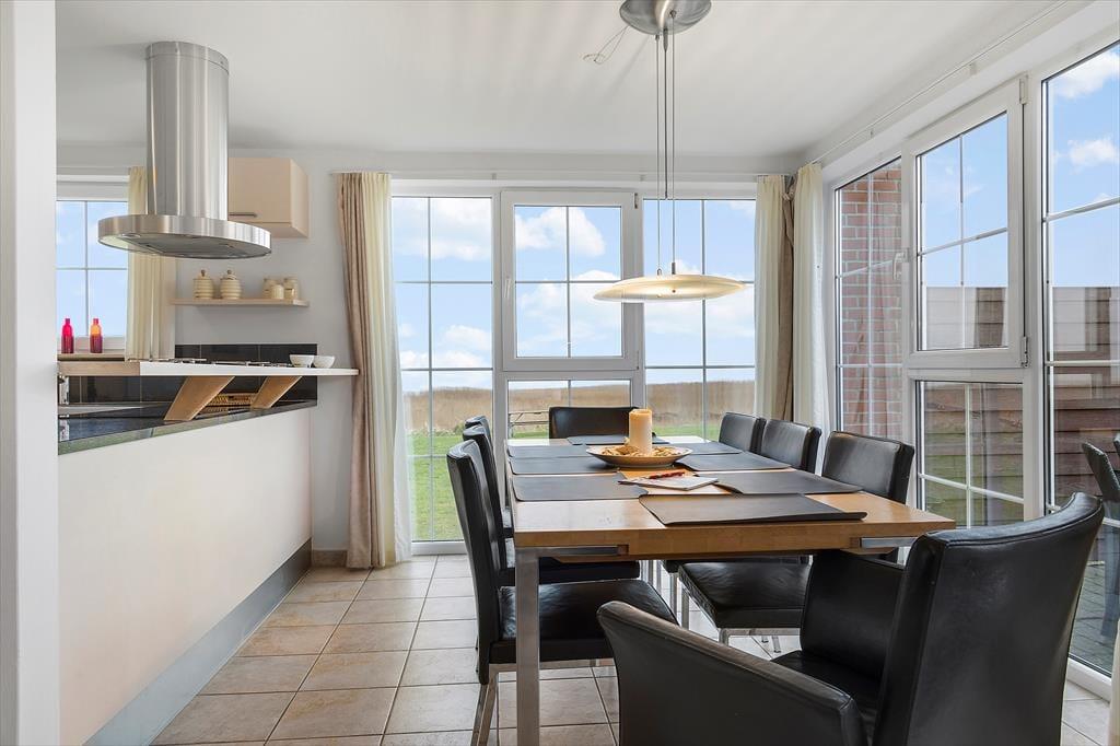 Med så eksklusiv en beliggenhed blev der selvfølgelig gjort meget ud af selve ferieboligen, da den blev opført i 2005. Selvom rækkehusene er en moderne bebyggelse, er stilen holdt i klassisk Rømø-stil med rød murstensfacade og stråtag. Inden døre kan I brede jer på 116 m2 i halvandet plan, der blandt andet byder på tre soveværelser og to komplette badeværelser, hvoraf det ene er udstyret med spabad. På praktisk vis er sovegemakkerne og badeværelserne placeret både i stueplan og på førstesalen, og som supplement er der to madrasser på hemsen, så i alt kan der være otte feriegæster inden døre. Alle kan samles i stueplanets køkken-alrum, hvor I kan nyde den flotte vadehavsudsigt – både når I sidder omkring spisebordet og når I kokkerer i køkkenafdelingen, som byder på amerikanerkøleskab, opvaskemaskine og andre lækre detaljer. Havudsigt og en hyggelig atmosfære er der for øvrigt også i førstesalens stue, hvor I kan slappe af i sofaen nær brændeovnen.