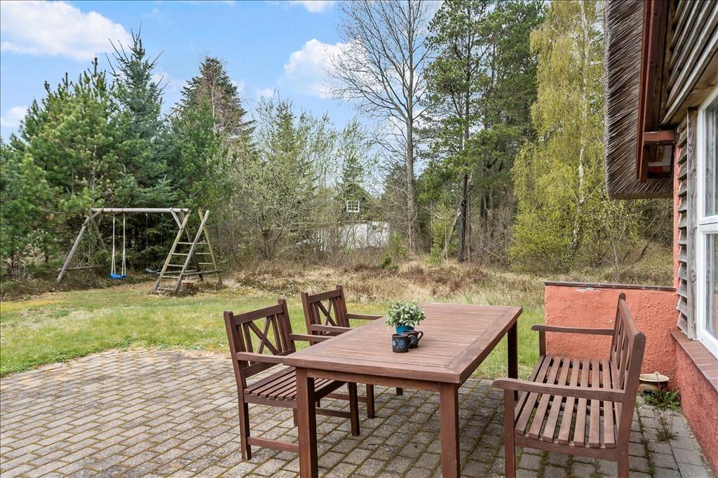 På solrige dage kan I flytte læsning, frokoster og andre hyggestunder ud i det fri. På den 2744 m2 store naturgrund har I to terrasser at vælge imellem, så I kan lige tage bestik af vejrforholdene, før I sætter jer i de komfortable havemøbler. Et gyngestativ står også på grunden, og der er god plads til at lege på græsplænen. Får I det varmt af boldspil eller solbadning, kan I blive frisket op i den udendørs bruser.