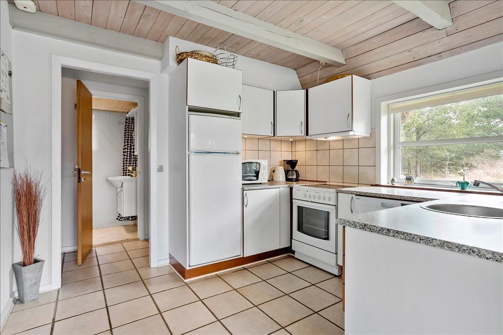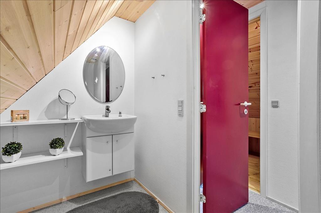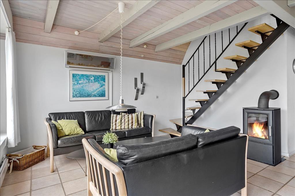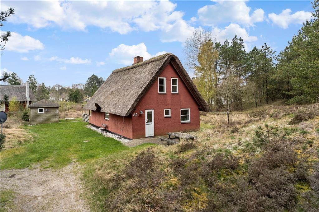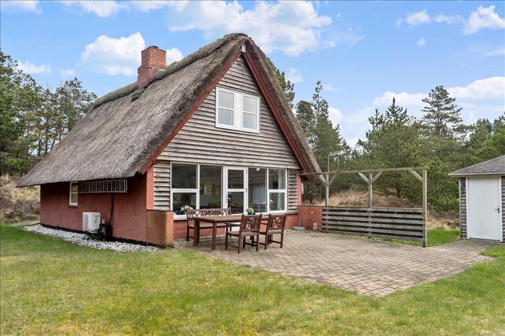 Det stråtækte sommerhus har ligget her på adressen siden 1969, og både inde og ude er det tydeligt at se, at der er blevet passet særdeles godt på det. Inden døre fremstår det lyst og indbydende takket være gode renoveringsprojekter – for eksempel byder stueetagen på et skønt opholdsrum med indlagt gulvvarme, brændeovn og et dejligt integreret køkken. I samme etage finder I desuden to gode soveværelser, et badeværelse og et bryggers med vaskemaskine. Går I op på førstesalen, kommer I til et tredje soveværelse, og som supplement til husets badeværelse er der et ekstra toilet og en sauna her på etagen. Sidst, men ikke mindst, byder førstesalen på en dejlig stue, hvor I kan hygge jer med en god film eller en spændende bog i de komfortable siddemøbler.