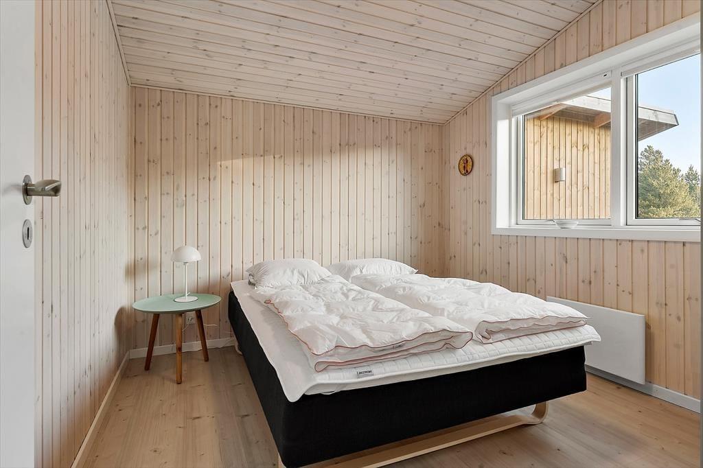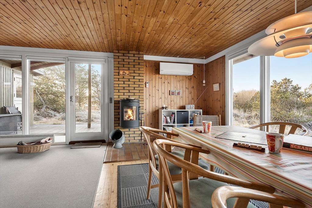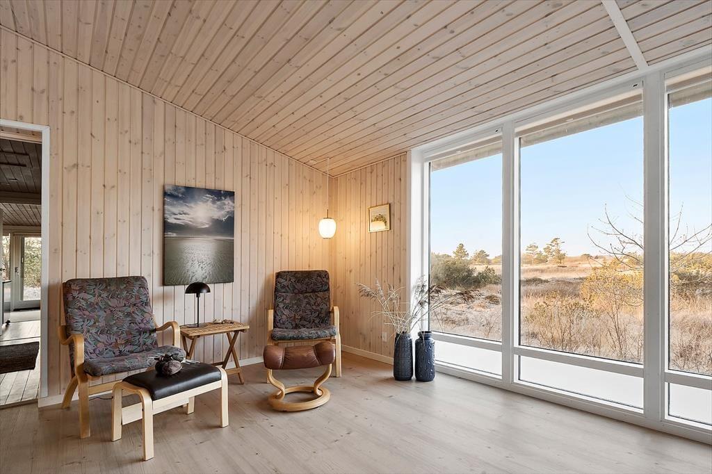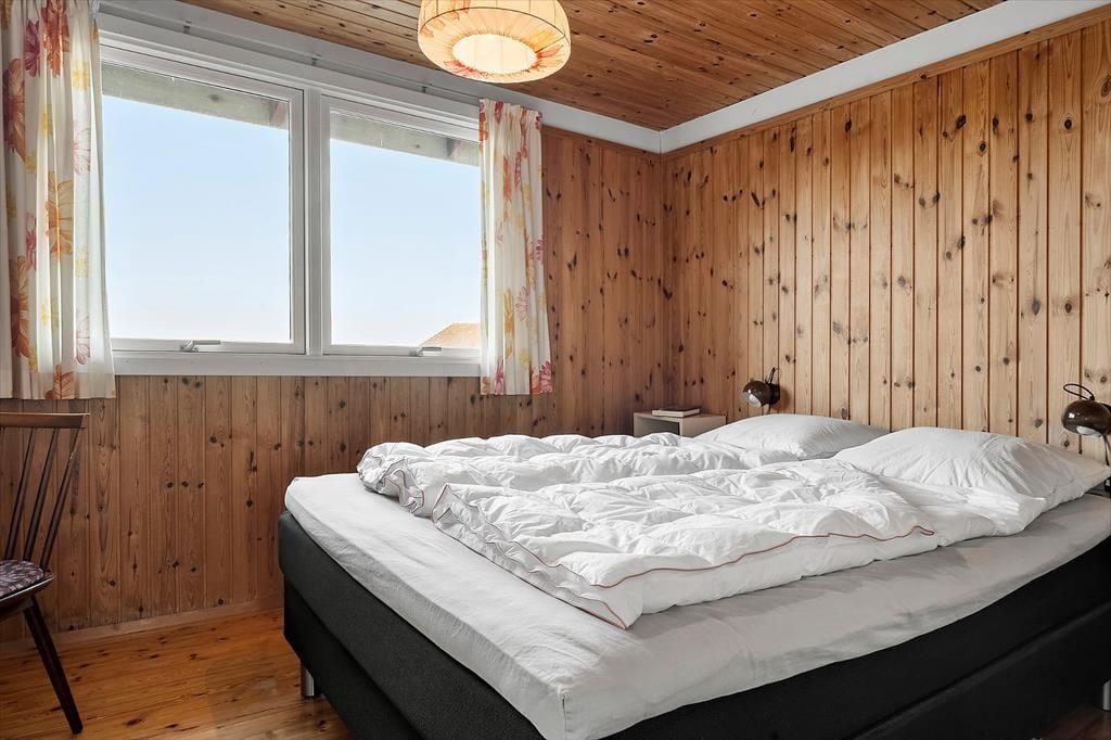 Sommerhus i Kongsmark, Vestjylland, med plads til 6 voksne. Der er en hyggelig indretning med bl.a. brændeovn, og du finder desuden vaskemaskine, opvaskemaskine og tørretumbler i boligen.