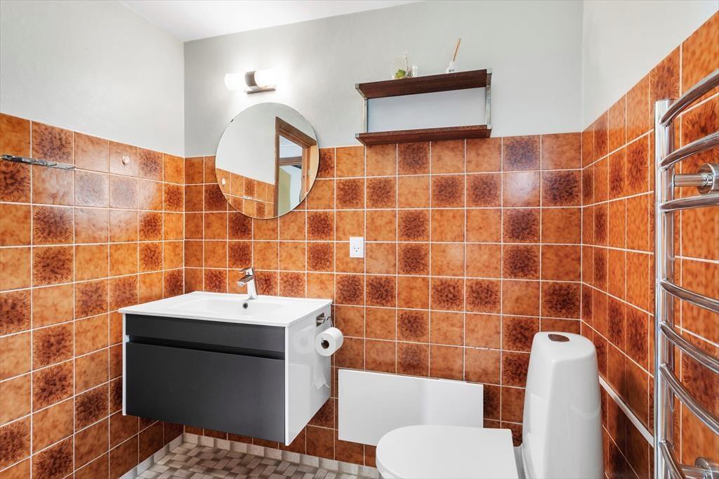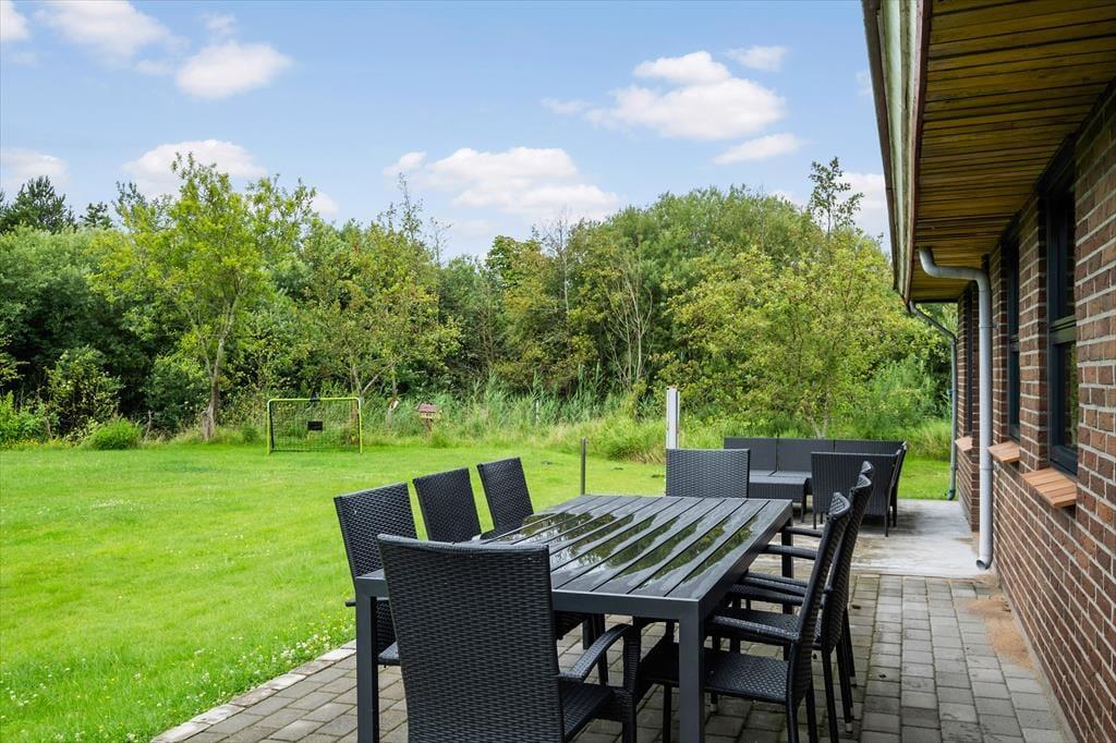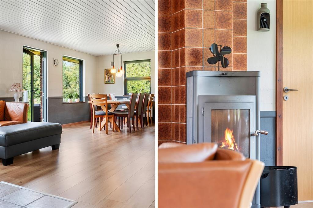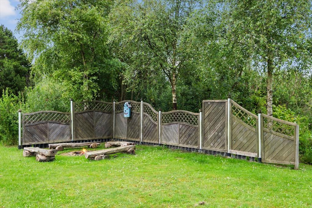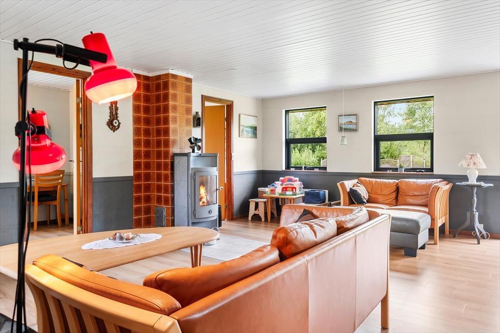 En dejlig terrasse breder sig på sydsiden af huset, og mod øst er der endnu et flisebelagt opholdsareal. Du har med andre ord rig mulighed for at finde en solrig siddeplads en stor del af dagen – og når tusmørket breder sig, kan du og dine kære sætte jer hen til bålstedet for at bage snobrød eller bare nyde den fredfyldte stemning i nærheden af flammerne. Grundens græsplæne er pæn og velholdt, så den fungerer som et glimrende underlag, hvis I vil spille vikingespil eller slå kolbøtter, og i indkørslen har du god plads til at parkere bilen på gruset.