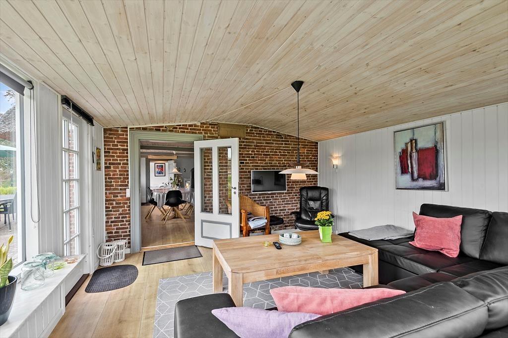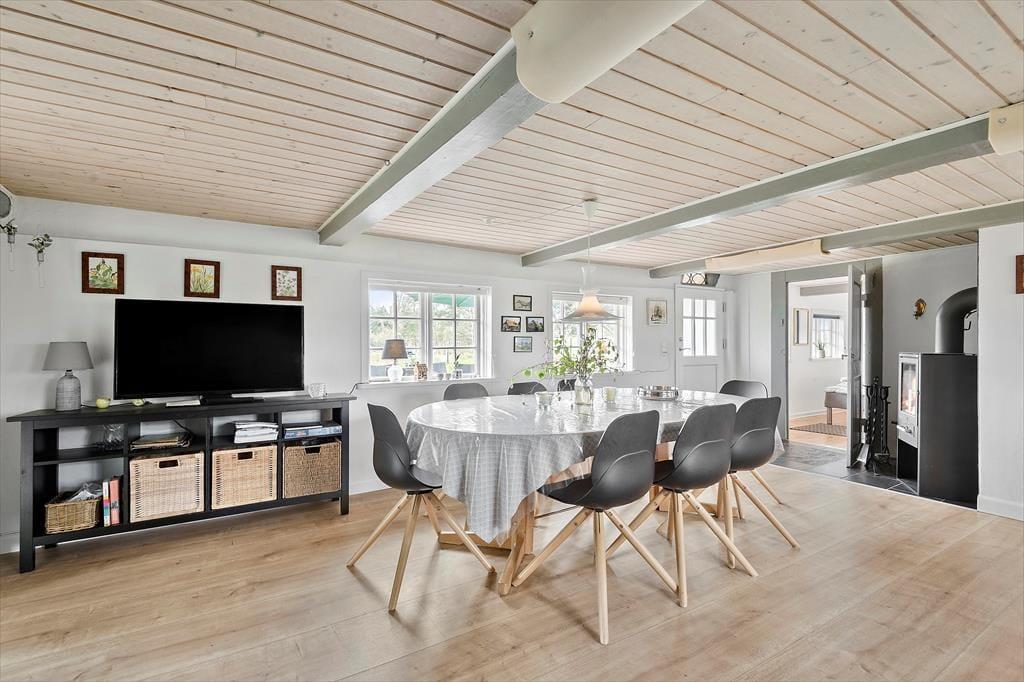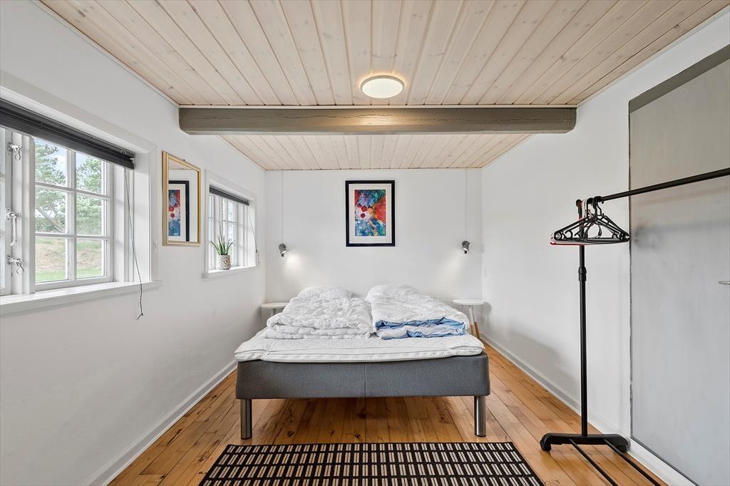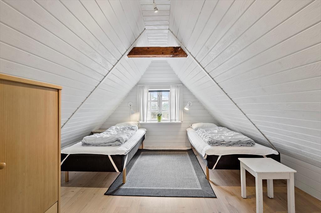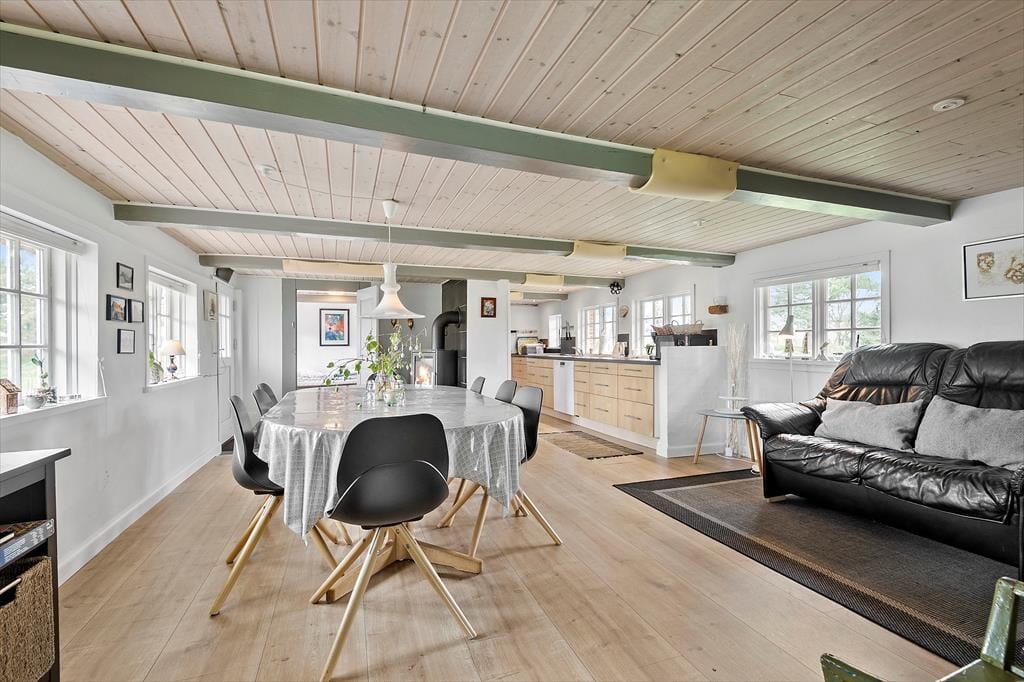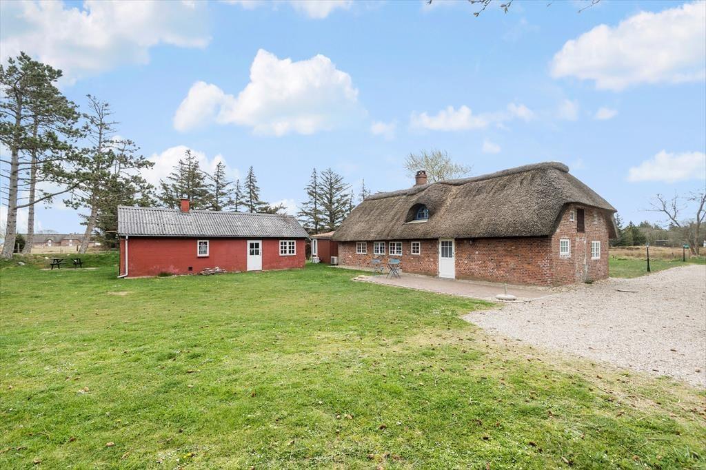 Den stråtækte murstensejendom har en historie, der går langt tilbage, men særligt inden for de seneste år er der sket en del forandringer. I 2018 blev huset nemlig grundigt renoveret, så du kan se frem til at holde ferie i lækre og komfortable rammer – med alskens hvidevarer i det veludstyrede køkken, gulvvarme på badeværelset og varmepumpe i stuen. Opdateringen er sket med respekt for den oprindelige byggestil, så markante loftsbjælker og andre fine detaljer kan stadig ses i de atmosfærefyldte rum, og som det kan forventes af et hus fra den tid, er loftshøjden under træbjælkerne visse steder cirka 180 cm. I stueetagen er køkkenet integreret med en dejlig spisestue med brændeovn, og herfra kan du træde ind i en skøn opholdsstue med bløde sofaer og store vinduespartier. To soveværelser og det førnævnte badeværelse ligger også i stueplan, mens førstesalen byder på yderligere to soveværelser og et hyggeligt gennemgangsrum.