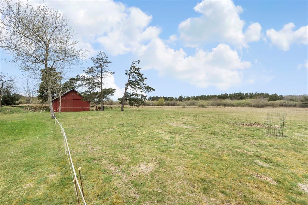 Ude i det fri har du plads til store armbevægelser og alle former for leg og afslapning på den store, skønne og smukt beliggende naturgrund. Udover en have med solbeskinnede terrasser og græsplæne hører der også en græsmark på 1 ha til sommerhuset – og her er der både elhegn, læskur og vand, så det er en perfekt ferieresidens til en hest eller pony.