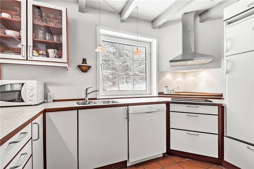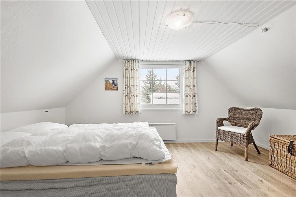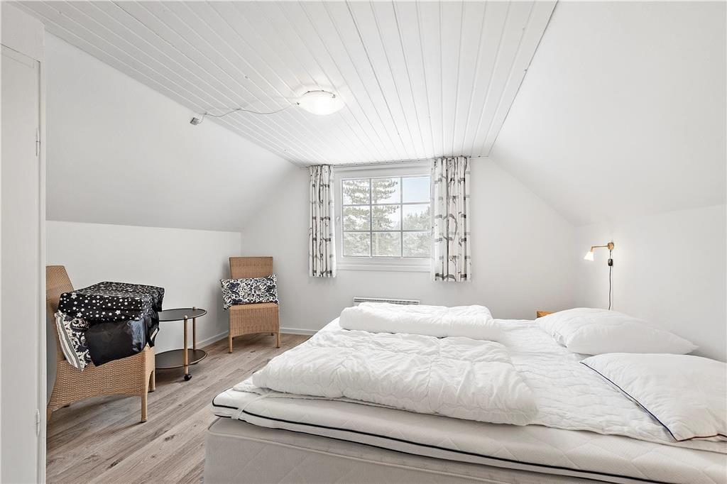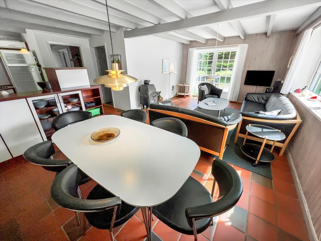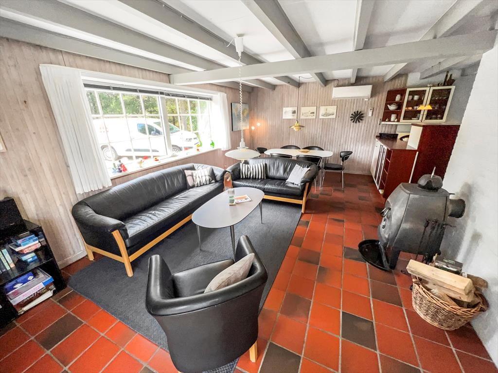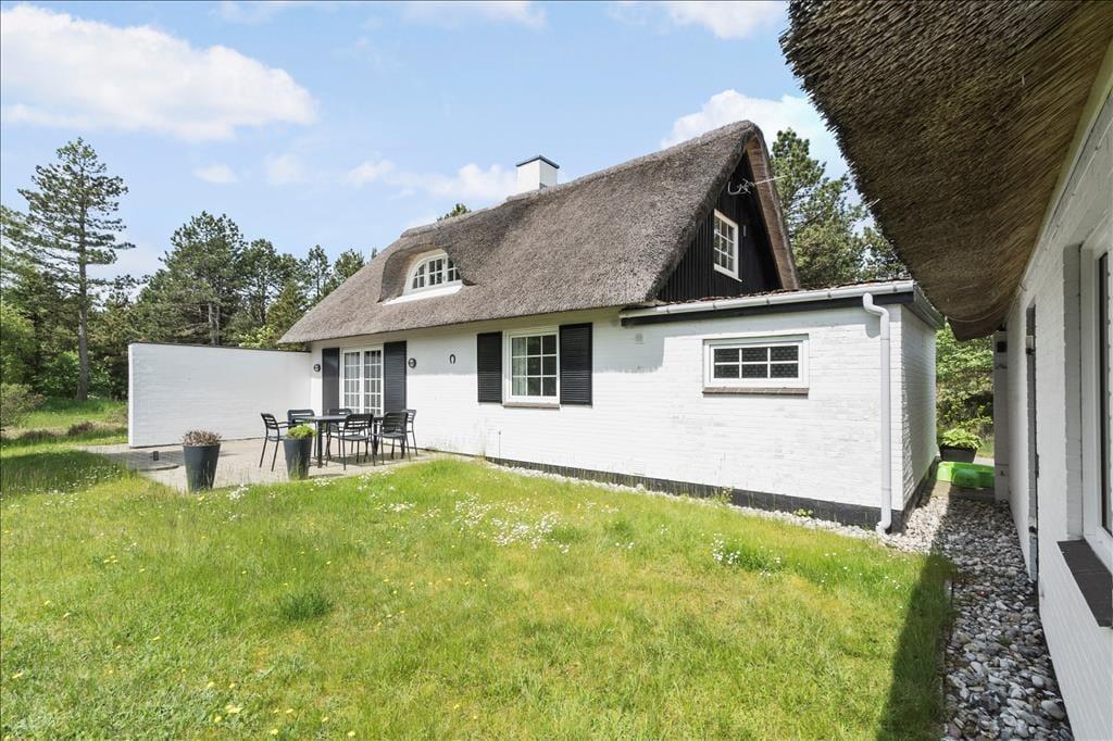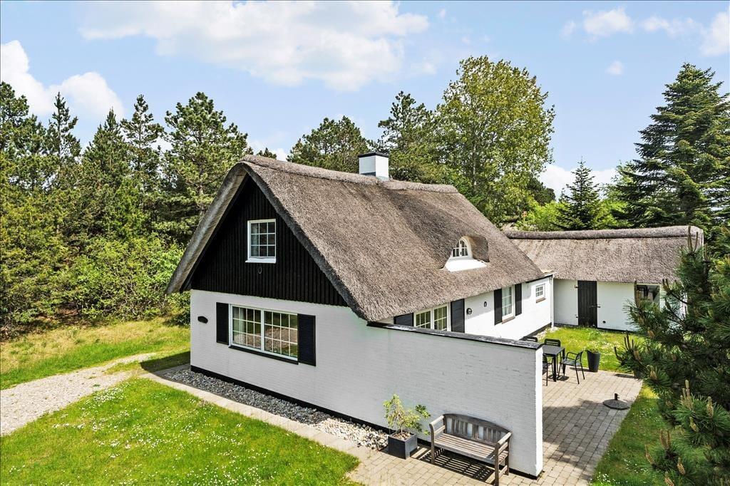 Her på den naturskønne adresse ligger et stråtækt sommerhus, som er opført i 1968 og sidenhen omsorgsfuldt renoveret og opdateret. Det har resulteret i en dejlig feriebolig, som både er fuld af hyggelig atmosfære og moderne komfort – ikke bare i stueplan, men også på førstesalen. Sommerhusets tre soveværelser er smart fordelt, så de ligger både oppe og nede, mens gæstetoilettet og badeværelset, hvoraf førstnævnte er udstyret med vaskesøjle og sidstnævnte med sauna, er placeret i stueetagen. Det samme er stuen, som er et skønt opholdsrum med brændeovn og direkte forbindelse til et flot køkken. Takket være den åbne planløsning kan du altså nemt tage del i hyggesnakken om dagens oplevelser, mens du står og forbereder lækkerier til aftensmaden.