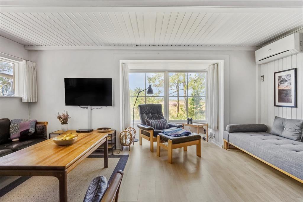 Huset er blevet komplet renoveret med stor respekt for den originale, klassiske sommerhuscharme. Det ligger harmonisk og diskret i det flotte naturlandskab, og udover huset på 72 m² får du et anneks på 20 m², så der er ekstra fleksibilitet, når sovepladserne skal fordeles. Indenfor i huset hviler en lys og indbydende atmosfære. Du får blandt andet et stort, stemningsfuldt opholdsrum med åbent køkken og hyggelige kroge – perfekt til ferieturens hyggelige samvær. Store vinduer vendt mod syd og vest bidrager med både indfaldslys og udsigt, og brændeovnen står klar til at sprede varme, når du slapper af inden døre. Herudover er der i huset et soveværelse med dobbeltseng samt to soverum med enkeltsenge. Endelig er der i annekset yderligere to sovepladser.