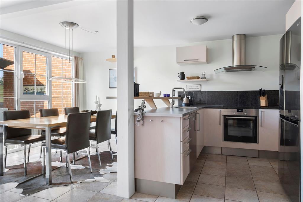 Når du træder ind i det stilrene sommerhus, mødes du straks af en lys og åben atmosfære. Store vinduer åbner op for et væld af naturligt lys og giver dig mulighed for at nyde den fantastiske udsigt til Vadehavet fra stuen. Indretningen er moderne med en hyggelig brændeovn, der skaber den perfekte varme og stemning til kølige aftener. Med de komfortable siddemuligheder er det ideelt at tilbringe tid med familien over et brætspil eller en god film. Takket være den store tv-pakke kan du også vælge mellem et bredt udvalg af kanaler – herunder hele 13 tyske programmer samt nogle svenske. Det åbne køkken og den indbydende spiseplads gør det enkelt at samle hele familien til hyggelige middage, hvor I kan dele ferieminder og snakke om dagens oplevelser. Som en ekstra bonus er der nem adgang til et væld af aktiviteter for både det voksne publikum og de mindste.