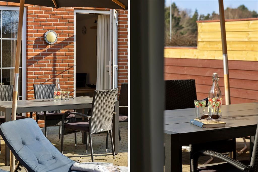 Udenfor finder du en skøn stor terrasse, hvor du kan slappe af og nyde den friske luft med en kop kaffe om morgenen eller et glas vin ved solnedgang og den overdækkede altan giver dig mulighed for at nyde udendørslivet, uanset vejret. Der står også en Weber gasgrill til rådighed, perfekt til en lækker grillaften med familien. I umiddelbar nærhed af huset ligger der også en fælles legeplads, hvor børnene kan lege og boltre sig, så længe de har lyst, og få nogle hyggelige timer til at gå. Fra sommerhuset tager det ikke mange minutter at køre til strandene på Sønderstrand og Lakolk, hvor du kan boltre dig i det klare vand eller bygge sandslotte. Rømø byder også på vidunderlige muligheder for vandreture og cykelture i Kirkeby Plantage, som ligger tæt på, hvor du kan tage hunden med i den indhegnede hundeskov og lade børnene lege på skovlegepladsen.