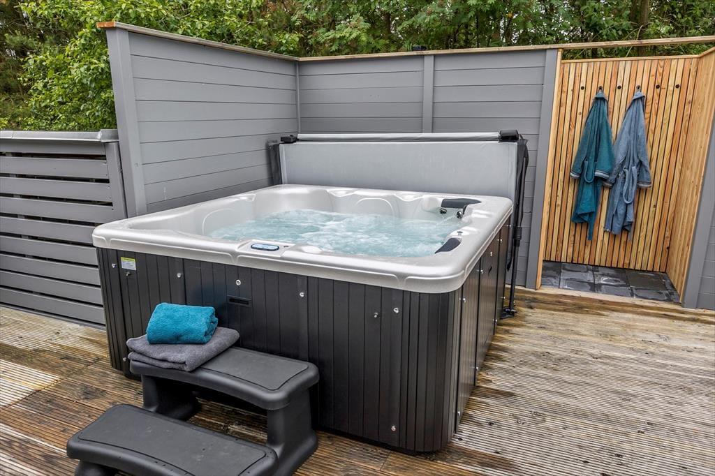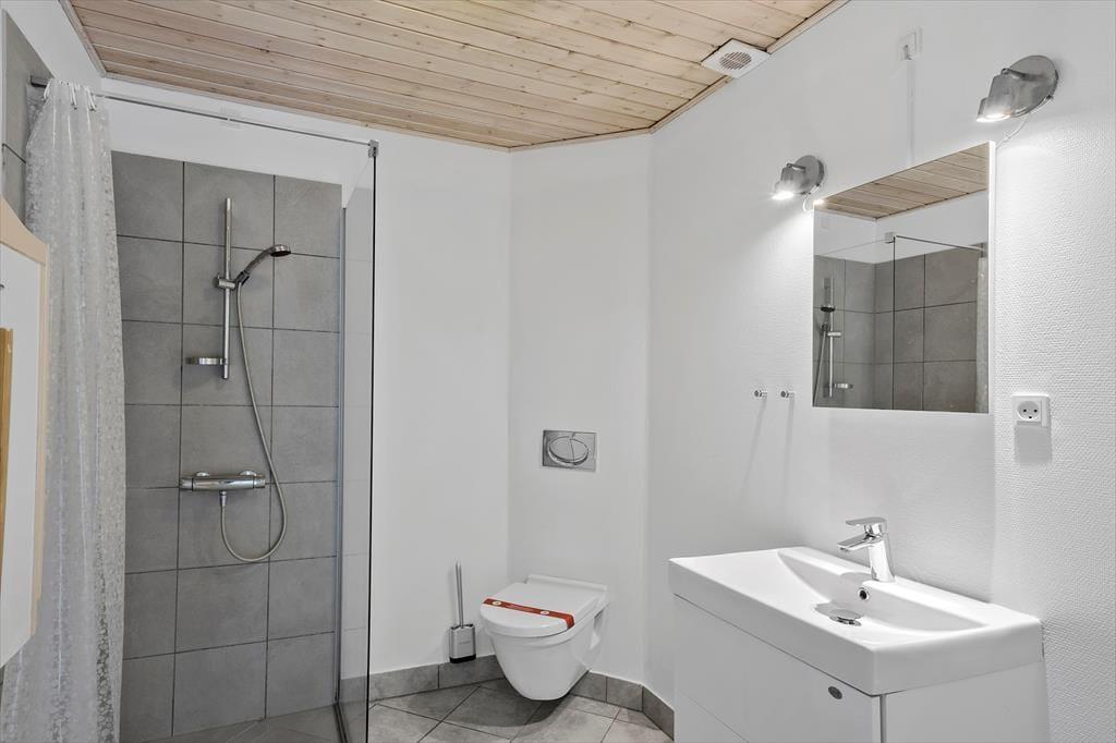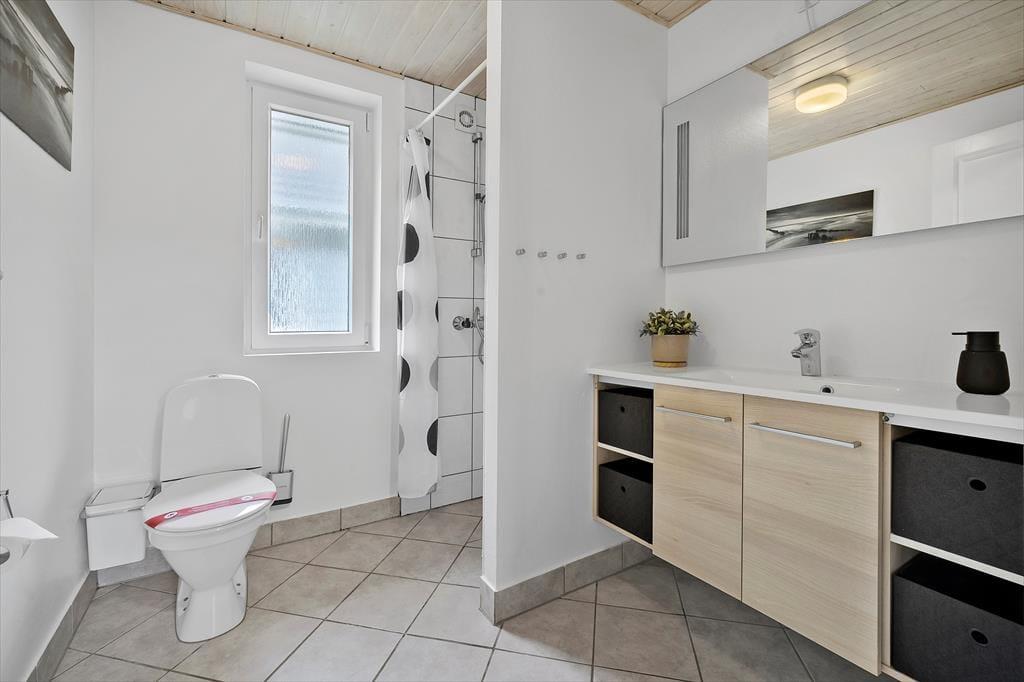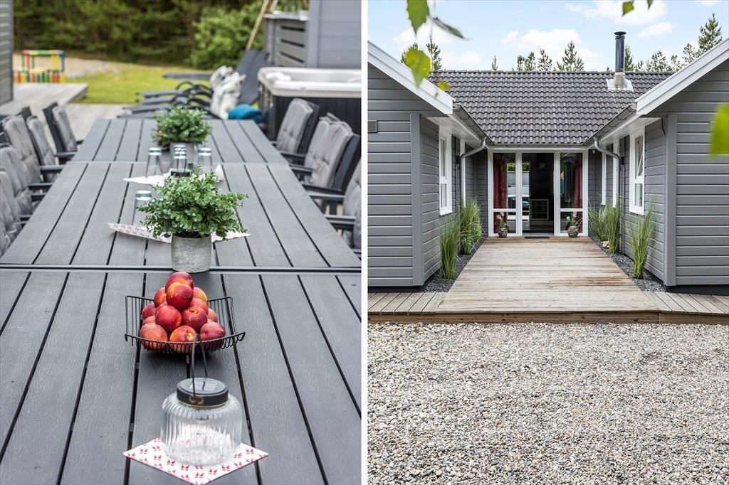 Også ude i det fri er der sket forbedringer for nylig i form af en stor og solrig træterrasse, der ligger syd for sommerhuset. I har adgang til den fra både opholdsrummet og poolafdelingen, og det er en skøn og delvist afskærmet oase, der er udstyret med grill, liggestole og havemøbler af god kvalitet, samt udebruser, en tøndesauna og en skøn udespa. Grunden måler 2.350 m², så I har også masser af plads til parkering og til at boltre jer på græsplænen, der er udstyret med legefaciliteter til børnene. Grundens have er indhegnet, hvilket sikrer at ingen farer vild imens de boltrer igennem den og får afbrændt masser af energi.