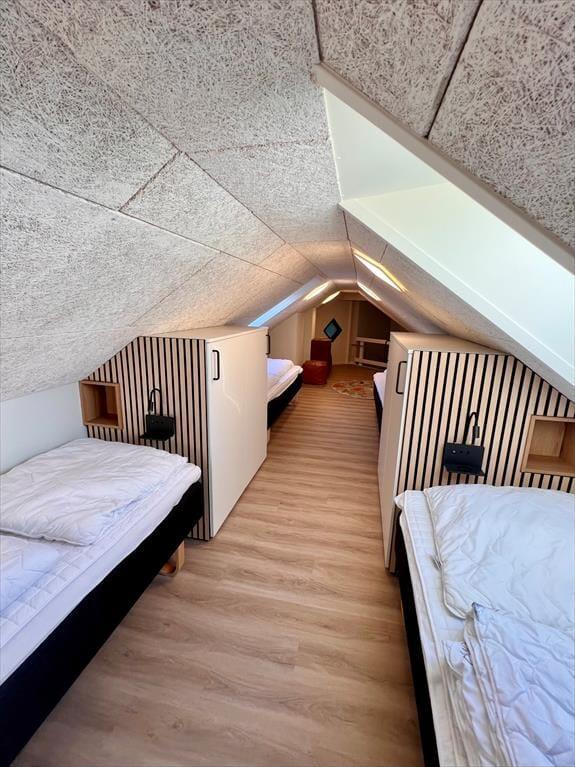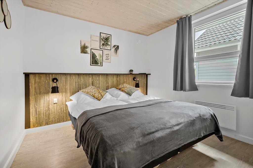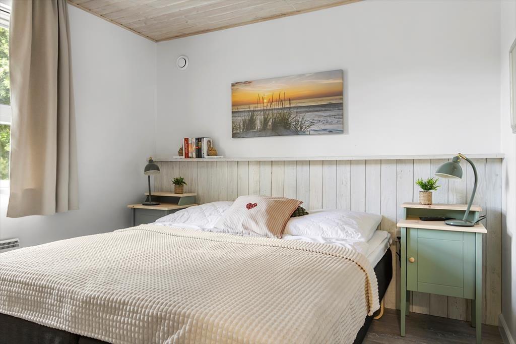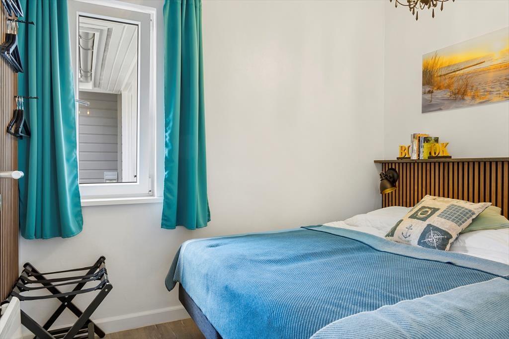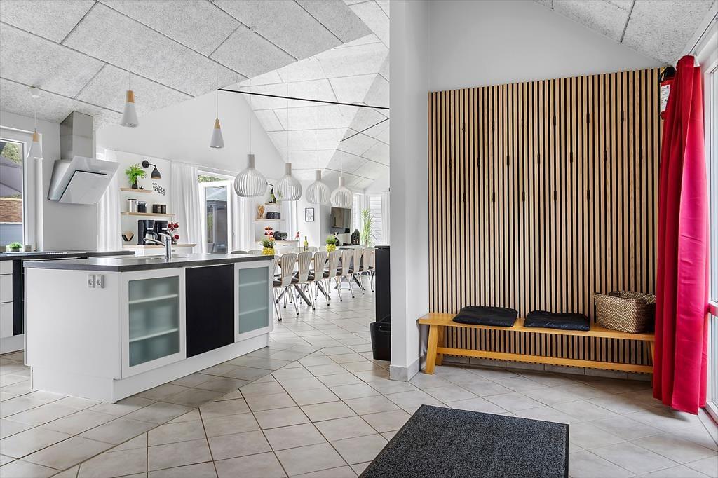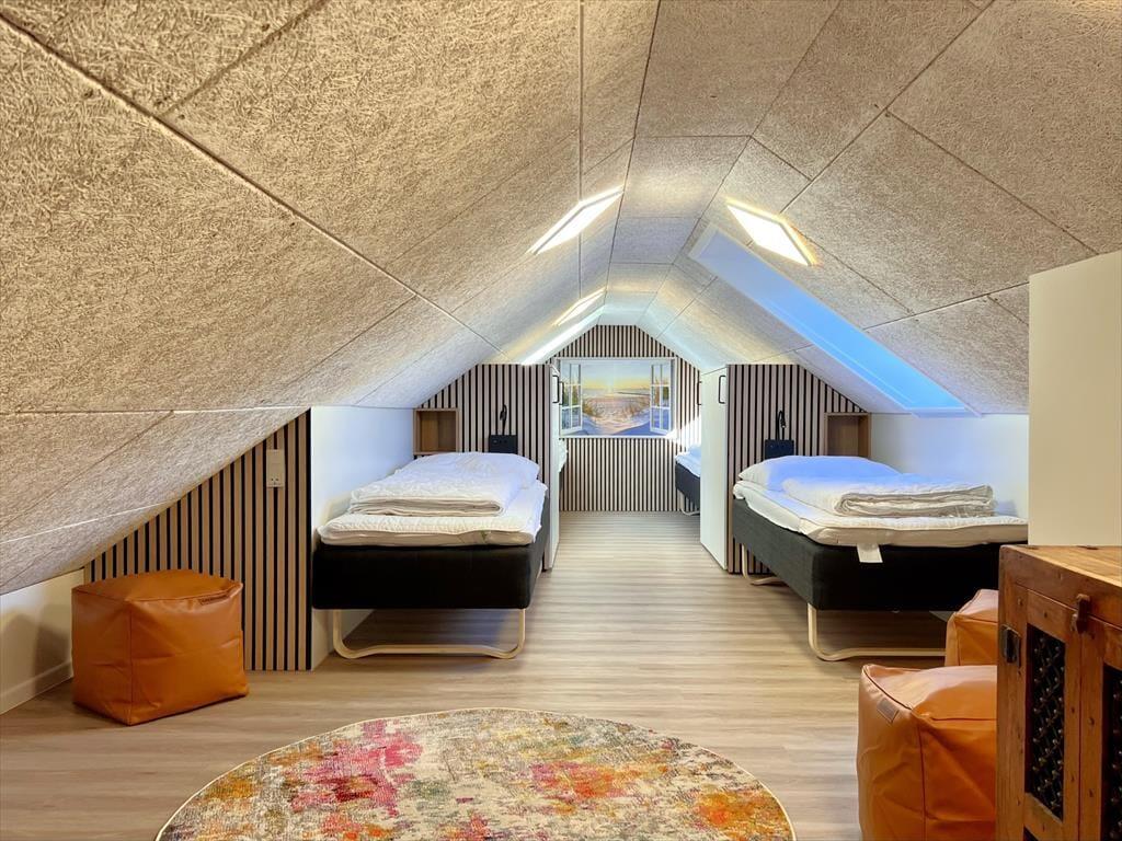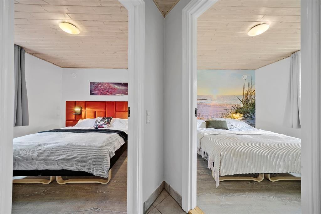 Sommerhuset ligger i Kongsmark midt på Rømø, og er løbede blevet renoveret, så det absolut er fulgt med tiden. I 2022 blev der foretaget omfangsrige forbedringer, hvor husets syv soveværelser har fået den helt store tur – det føles nærmest som at tjekke ind på et boutiquehotel, hvor værelserne har hver sin unikke stil. Et fællestræk for soveværelserne er de komfortable dobbeltsenge, som også kan adskilles til enkeltsenge, og så er det for øvrigt smart, at de er placeret i to separate afsnit med hver sit badeværelse. Er I mange samlet, kan I tage hemsen i brug, for her er der plads til yderligere fire personer. Husets tredje badeværelse ligger som del af den lækre poolafdeling, hvor I kan nyde livet i swimmingpoolen, spabadet og saunaen. Poolrummet er i marts 2025 blevet renoveret, så det også fremstår lyst og moderne. Et andet hyggeligt samlingspunkt er aktivitetsrummet, hvis I vil dyste i pool og bordfodbold – og ellers er det herligt at mødes i det store og højloftede opholdsrum, der er indrettet med et flot køkken, brændeovn, langbord og en rummelig sofaafdeling.