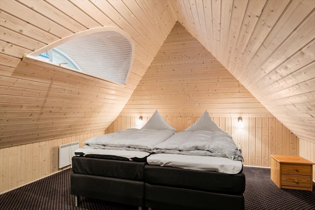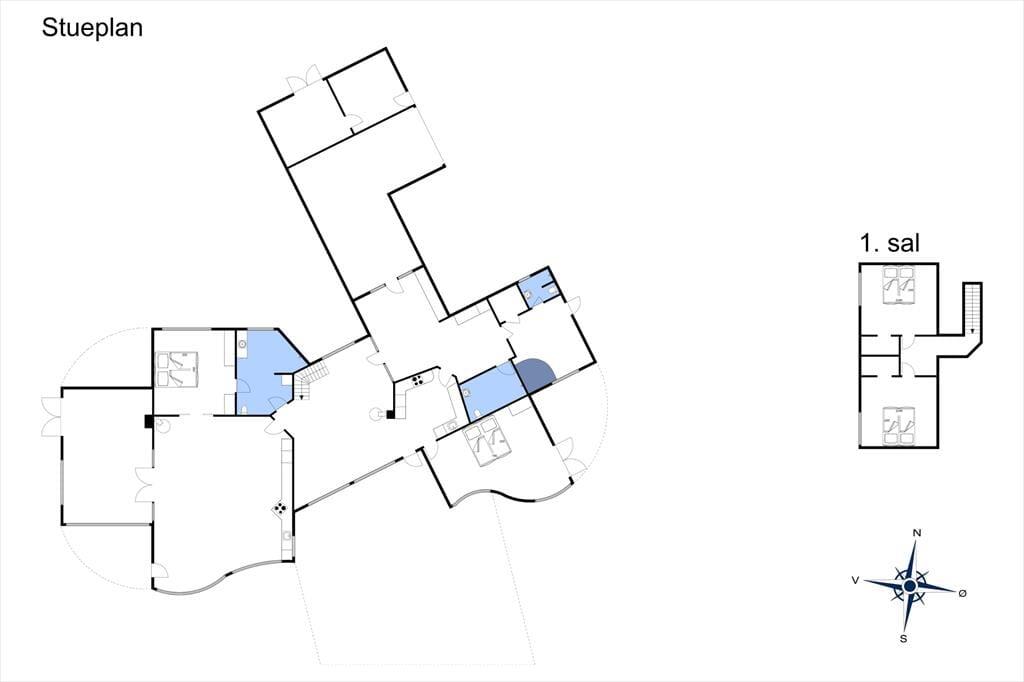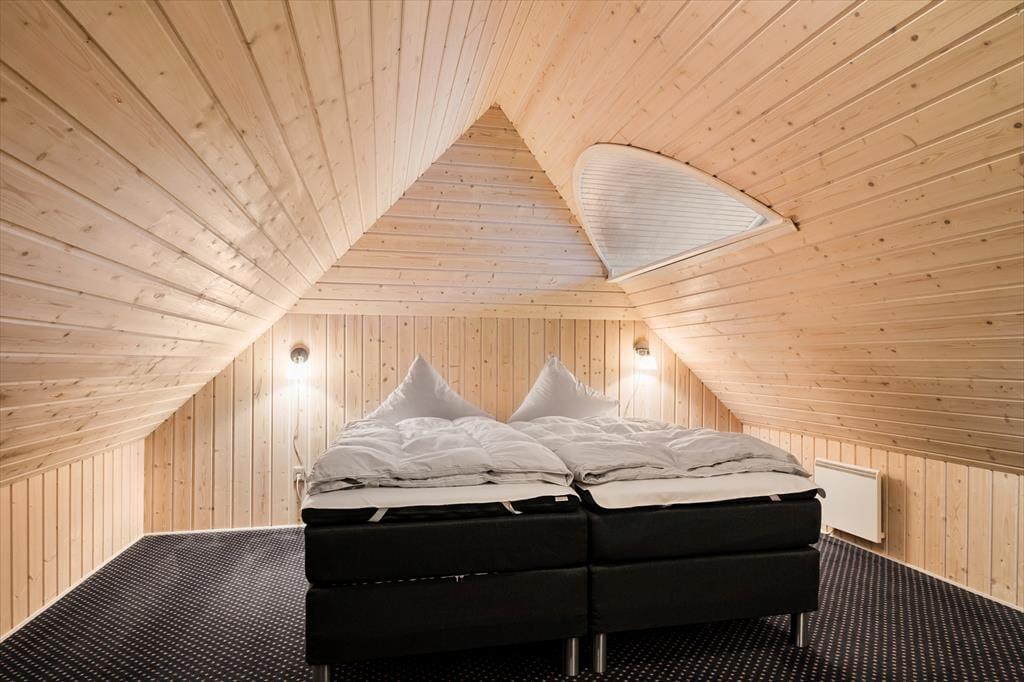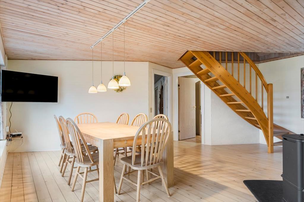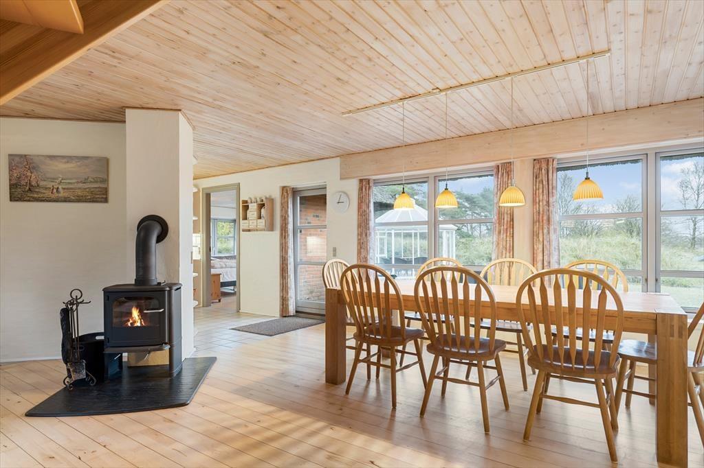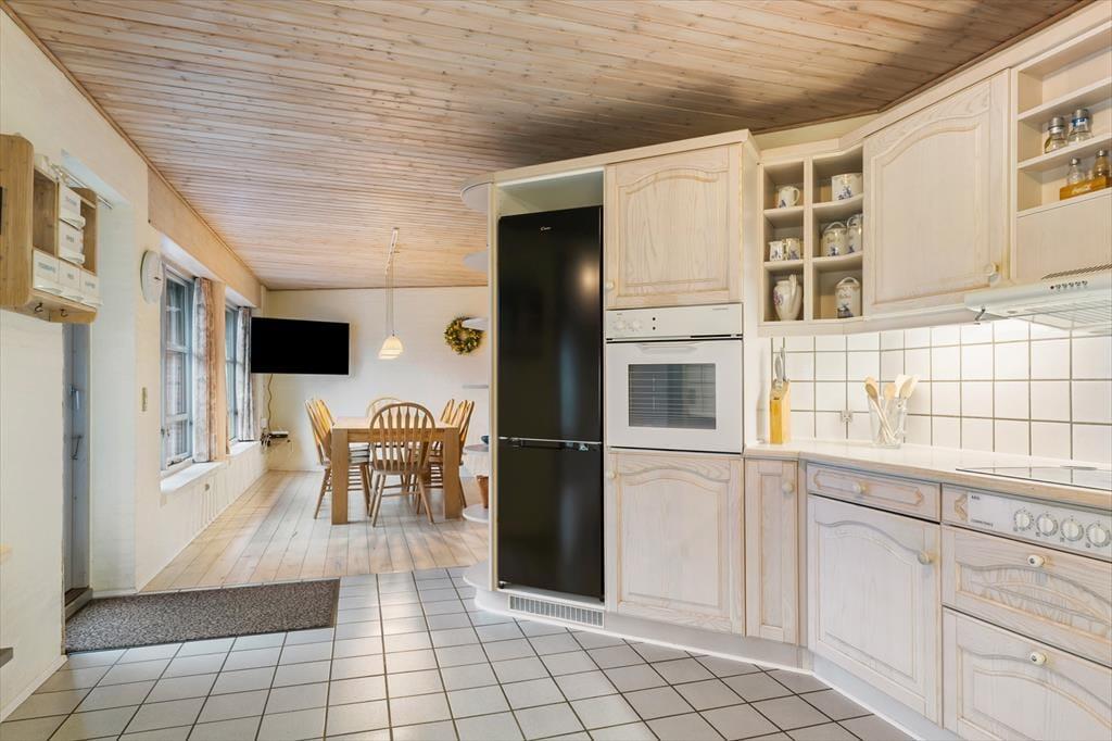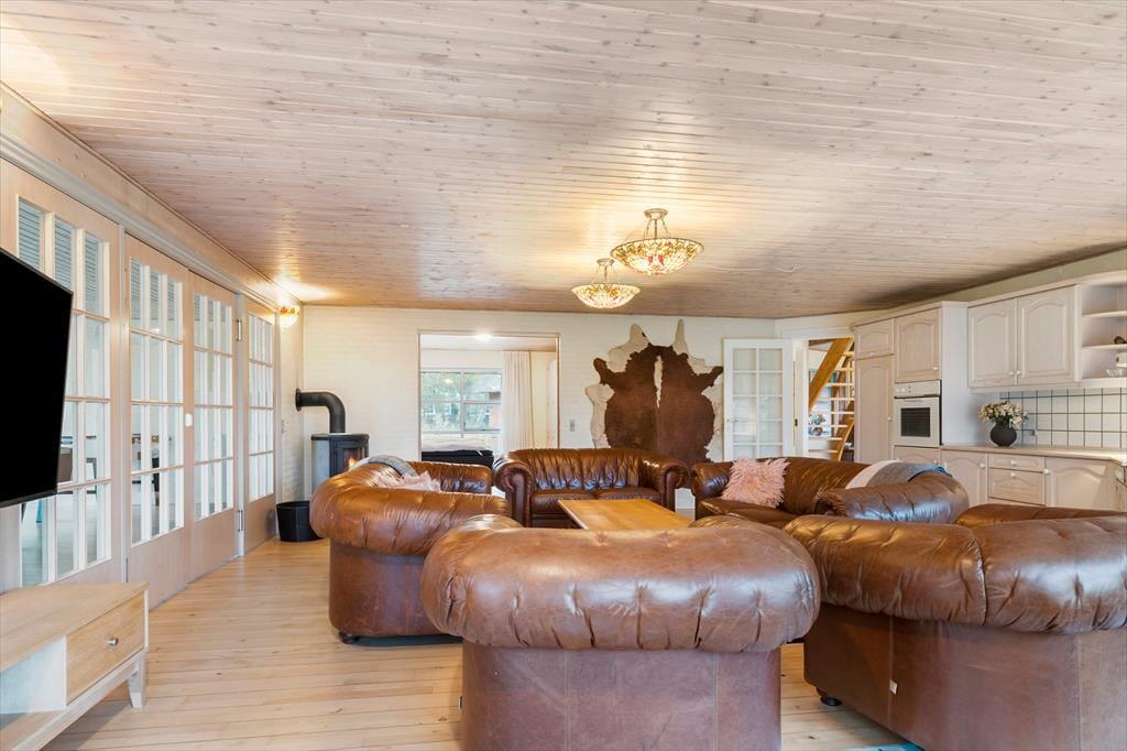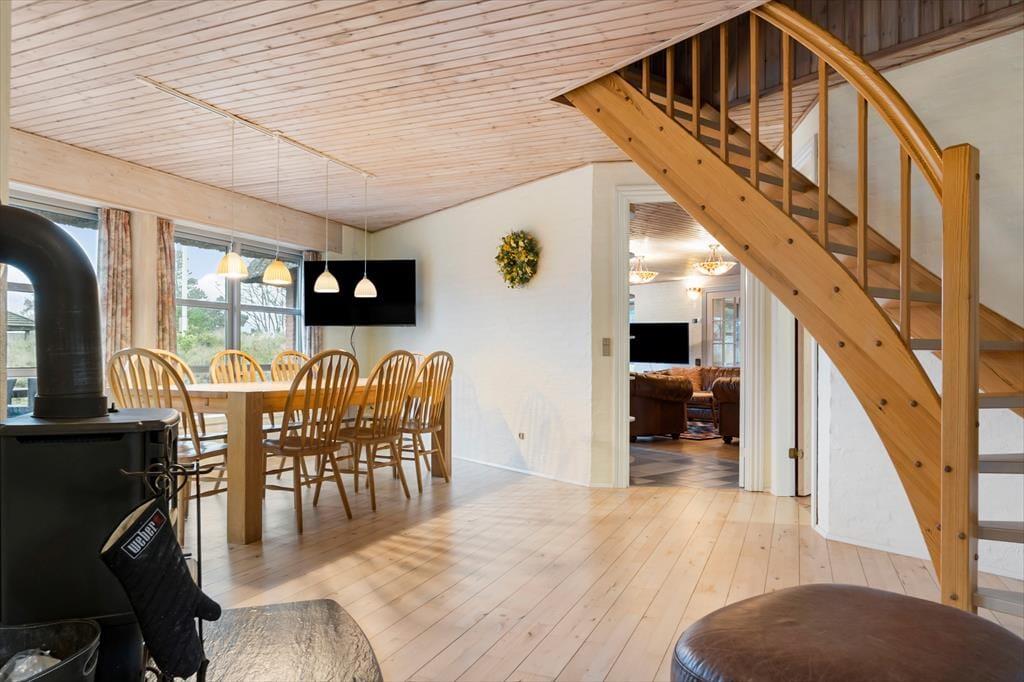 Huset er opført i 1996 og tager sig flot og indbydende ud med rødstensfacade, stråtag og hvide sprossevinduer. Det gode førstehåndsindtryk fortsætter, når du træder indenfor i ferieboligen, hvor pladsen er særdeles generøs. De sammenhængende opholdsrum sætter en dejlig ramme om det hyggelige samvær på ferieturen, og du kan sidde og nyde den omgivende natur gennem de store vinduespartier. Bemærk desuden, at der er udgang til terrasser og have fra alle husets opholdsrum. Der er to soveværelser i stueplan, mens de øvrige to er placeret på førstesalen. Huset er som noget helt særligt udstyret med to køkkener, og med tre badeværelser – det ene med sauna og et wellnessrum med spabad og motionsudstyr – er der skruet ekstra op for velværefaktoren. Du får også et aktivitetsrum med poolbord og bordfodbold.
