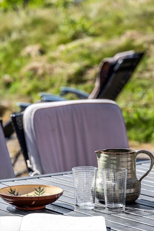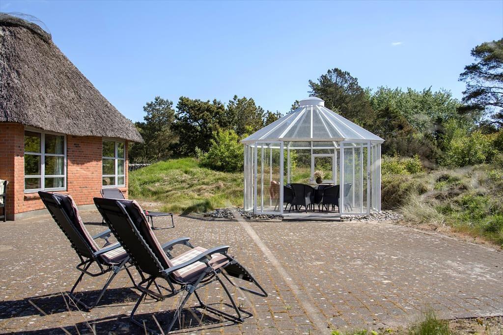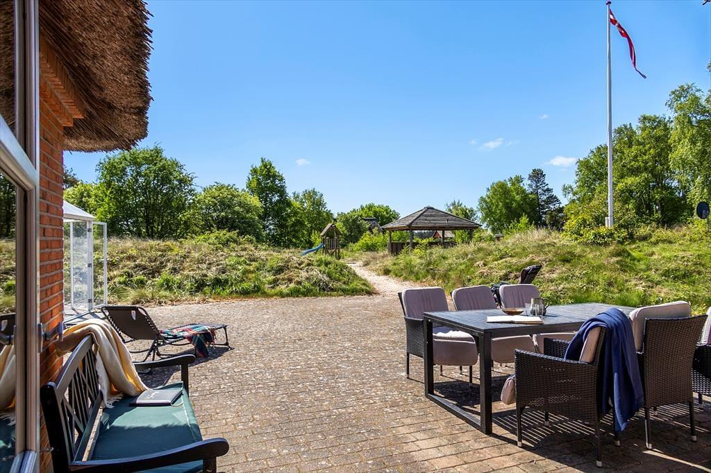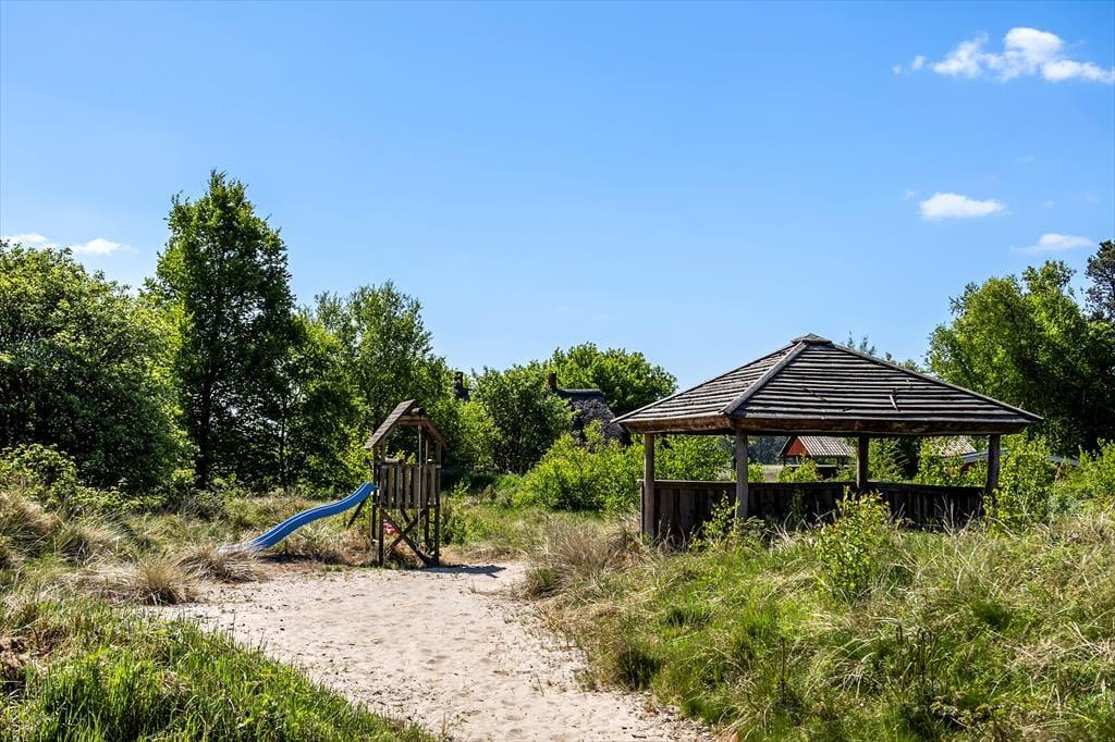 Med en naturgrund på hele 2652 m2 får udendørslivet fine betingelser. Grunden glider naturligt ind i det omgivende landskab, hvor husene ligger spredt med god afstand imellem sig. Her kan du nyde ferieidyllen på ugeneret vis, og der er mange hyggelige kroge, hvor du kan slappe af i solen og den friske luft. Der medfølger blandt andet en pavillon og en overdækket bålplads. På den store terrasse mod syd kan du dække op til hyggelige frokoster i det fri, og familiens yngste vil med sikkerhed elske at lege i de tilbagelænede omgivelser. Drømmer du om fred, ro og flot natur på ferieturen, er dette uden tvivl en ideel beliggenhed.