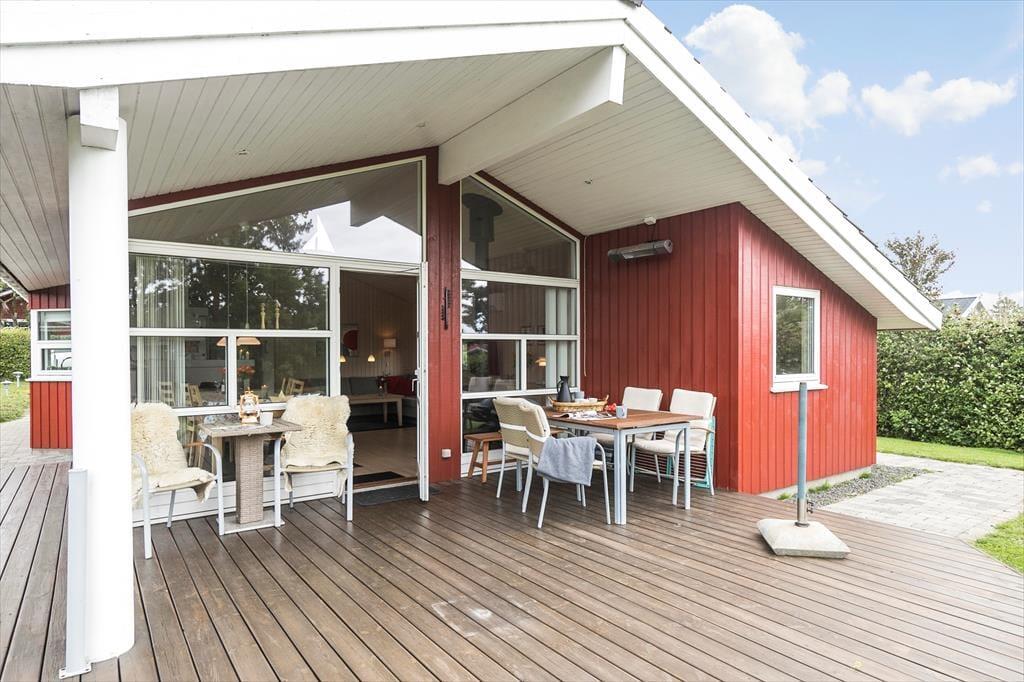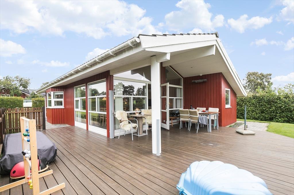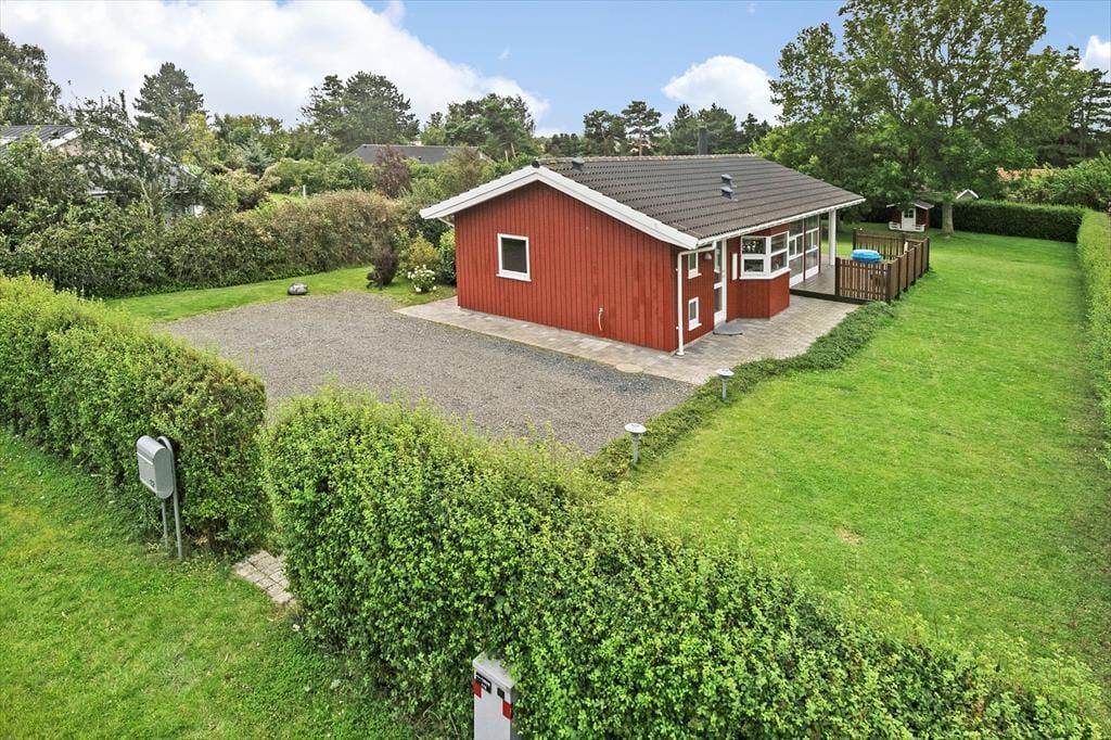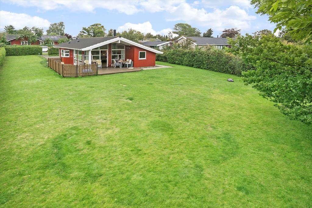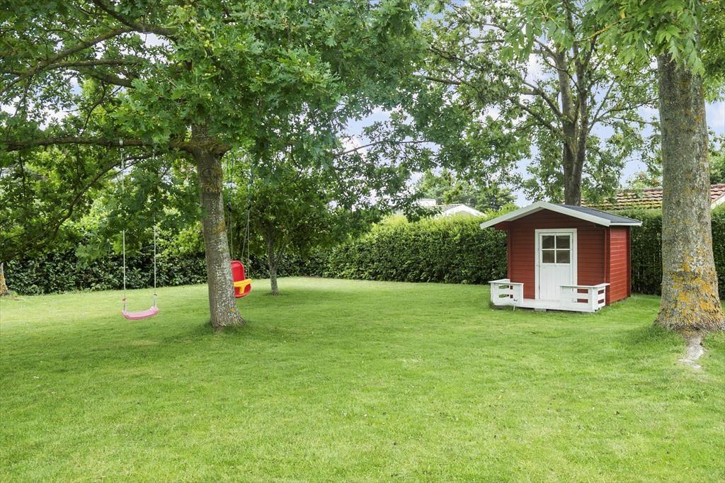 Huset har en 1.050 m2 stor grund, med en ugeneret have, en dejlig delvis overdækket terrasse, som inviterer til total afslapning. Ved huset er der havemøbler, liggestole parasol, grill, gynge, sandkasse, legehus, hængekøje og to cykler.