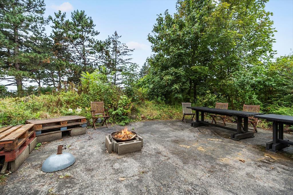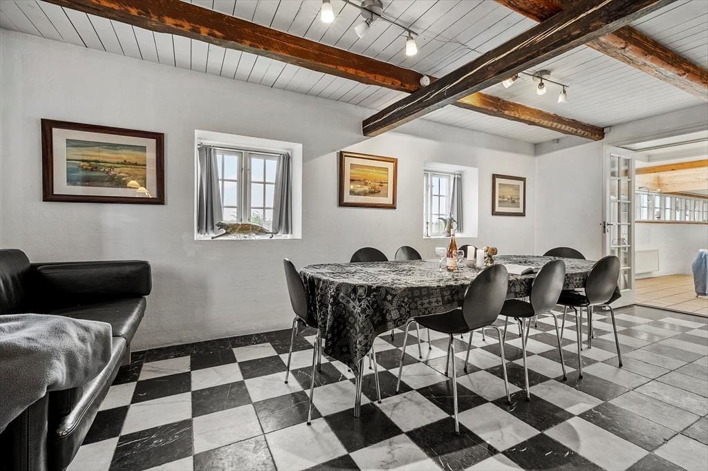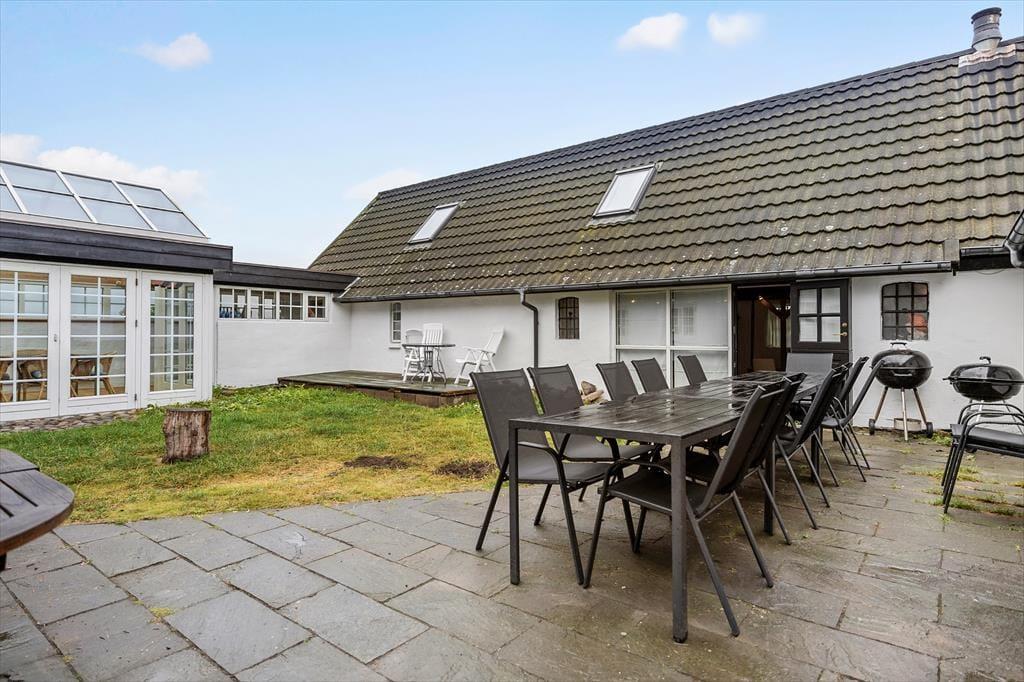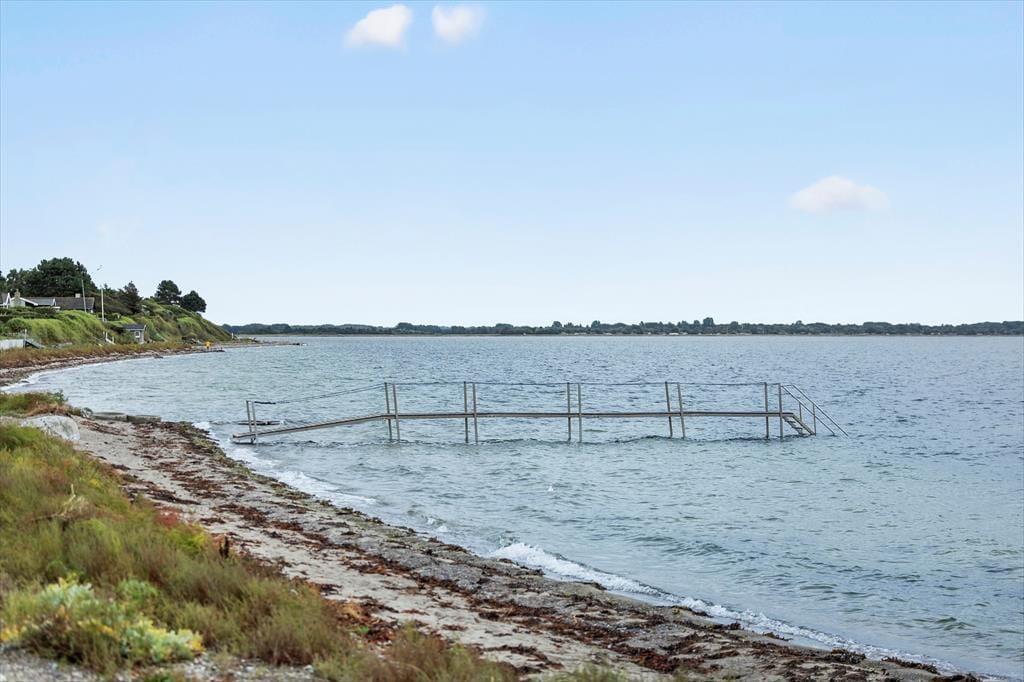 Nyd livet udenfor: Udover gårdhaven finder du også en dejlig terrasse, hvor solen kan nydes. Her er der rig mulighed for at læne sig tilbage med en god bog, nyde et glas vin eller samle familie og venner omkring et hyggeligt måltid under åben himmel. Når aftenen falder på, kan grillen tændes, og duften af sommer sprede sig, mens børnene hygger sig med at bage snobrød ved bålpladsen – en oplevelse, der skaber glæde for både store og små. Terrassen og de omkringliggende udearealer indbyder til afslapning, nærvær og uforglemmelige ferieminder. Huset ligger kun 50 meter fra stranden, hvor en badebro inviterer til en forfriskende dukkert på varme sommerdage.