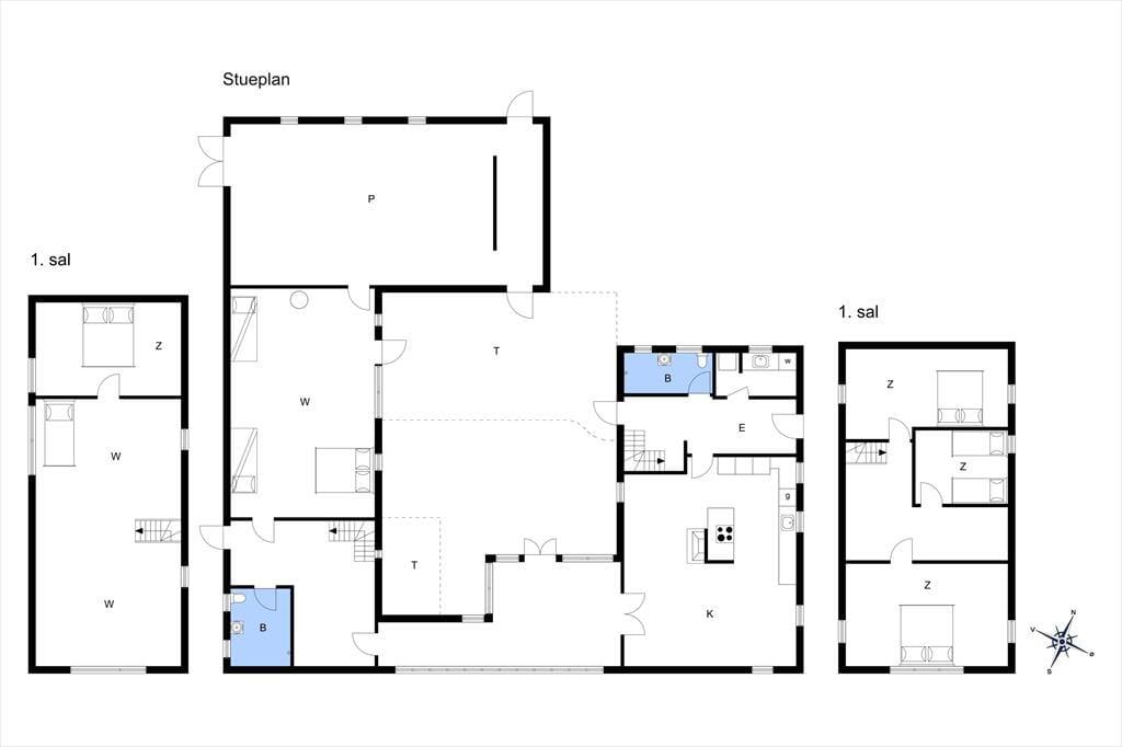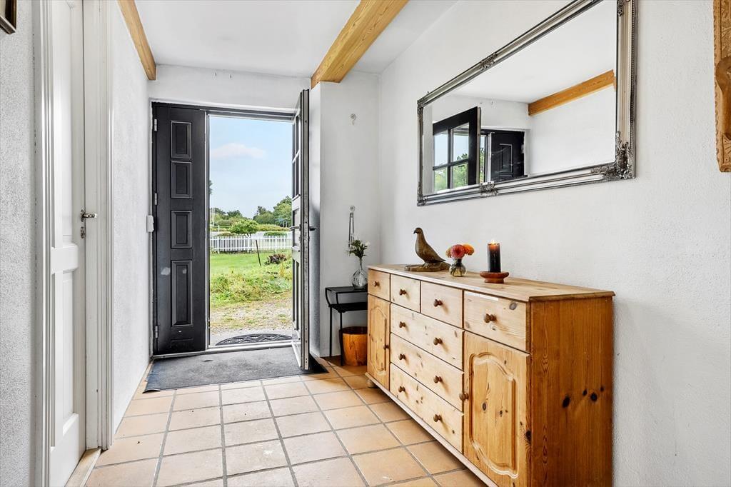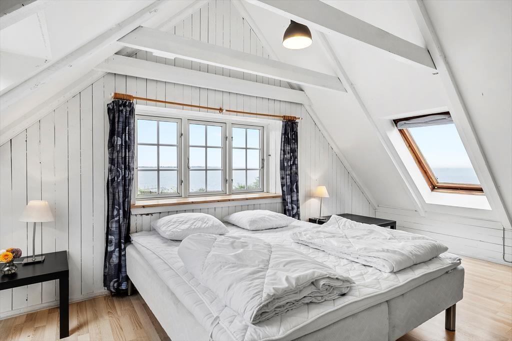Velkommen indenfor: Huset indeholder stort lækkert fransk inspireret landkøkken/alrum med pejs, hvor der er plads til at hele familien kan hygge ved spisebordet. De to længer er bygget sammen med en skøn udestue/havestue med masser af glas, og med udgang til gårdhaven som ligger i centrum af alle bygningerne. I stueetagen er der yderligere to badeværelser bygget i rustikke materialer, så stilen passer til resten af huset, endvidere et soveværelse. På 1. sal er der en stue med enestående udsigt til Storebælt, samt yderligere fire soveværelser, nogle også med havudsigt.