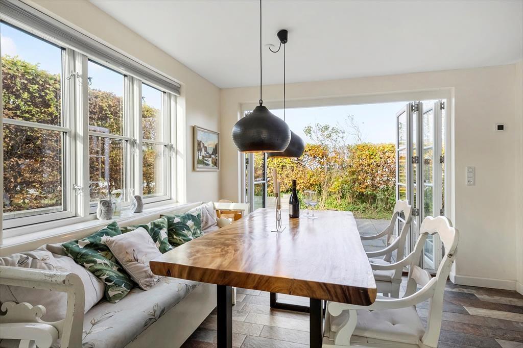Nyd livet udenfor: Træd ud på den dejlige terrasse i forlængelse af husets køkken eller på den dejlige tagterrasse, hvor du kan nyde naturen og den enestående udsigt udover Kongsmark strand mens solen går ned. Her er rig mulighed for at nyde de solrige dage og lade roen sænke sig. Tag også en tur til stranden, hvor du kan nyde en frisk dukkert eller en dejlig strandtur - og efter en lang dag på stranden, kan du tænde op i grillen og lade feriestemningen brede sig.
