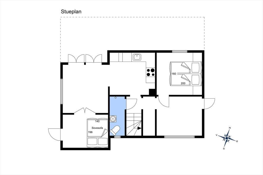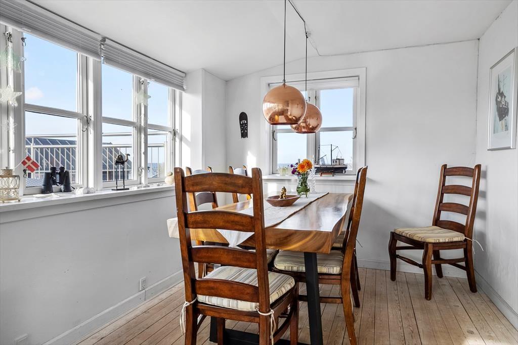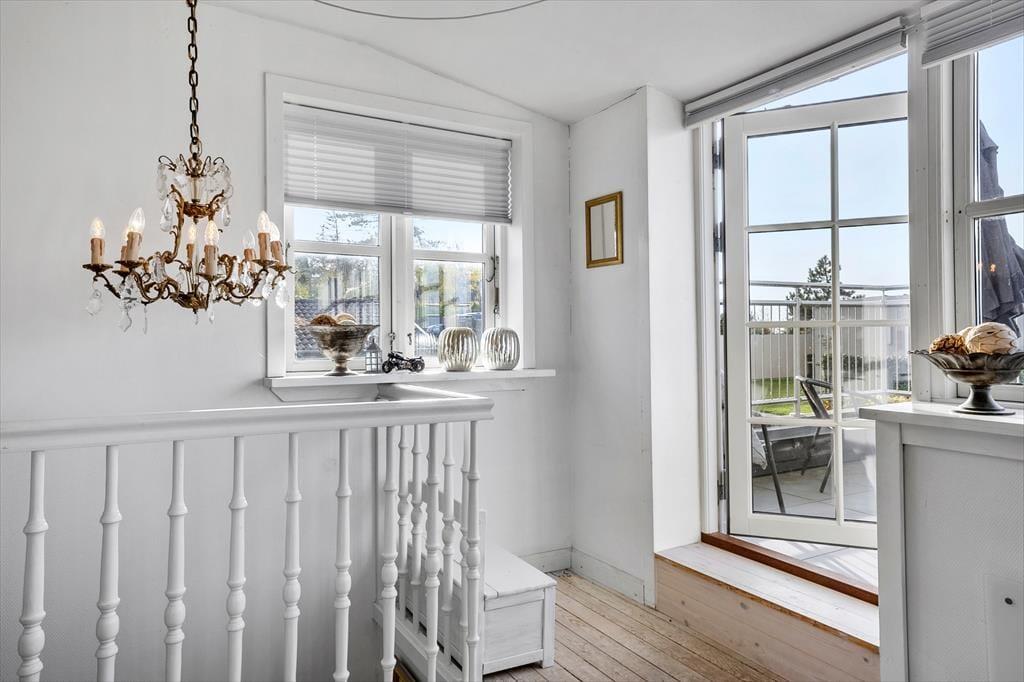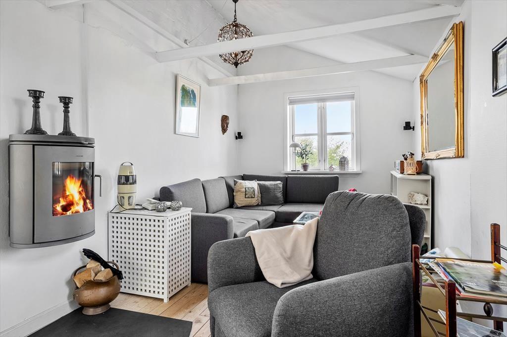 Velkommen indenfor: Huset er i to plan og med unik udsigt til vandet fra den store tagterrasse. Stueplan indeholder entre, to soveværelser, badeværelse med brus samt charmerende fransk inspireret køkken-alrum med brændeovn i køkkenet. Herfra udgang til dejlig stor åben terrasse. På 1. sal er der en hyggelig stue med brændeovn og en hyggelig spisestue med udsigt til vandet. Bemærk: Huset er i forskudte plan, som er adskilt af trapper og derfor ikke velegnet til gangbesværede.