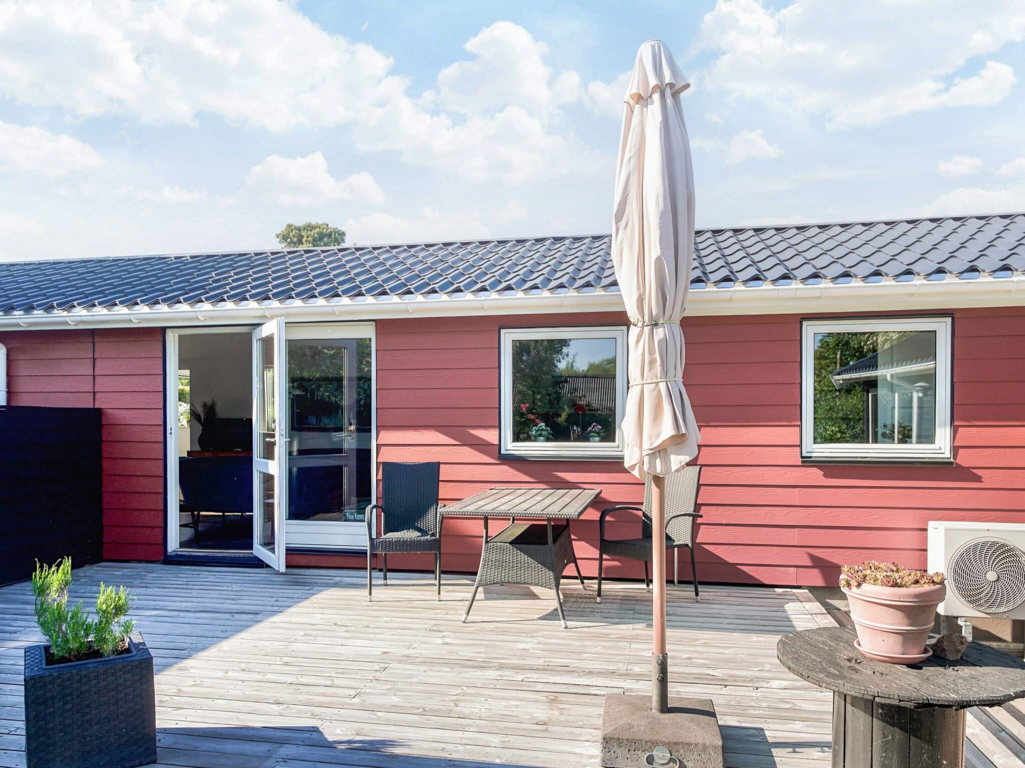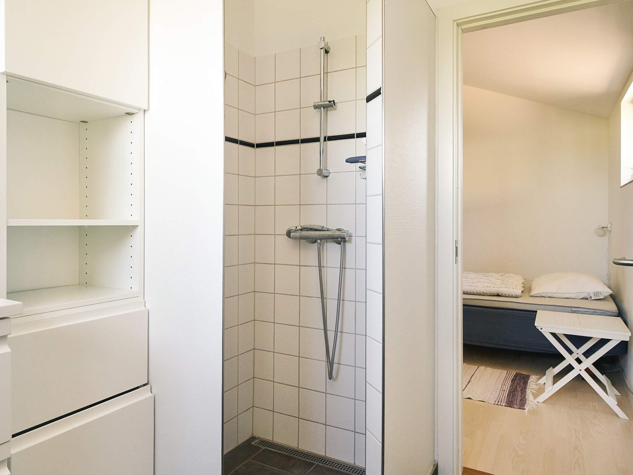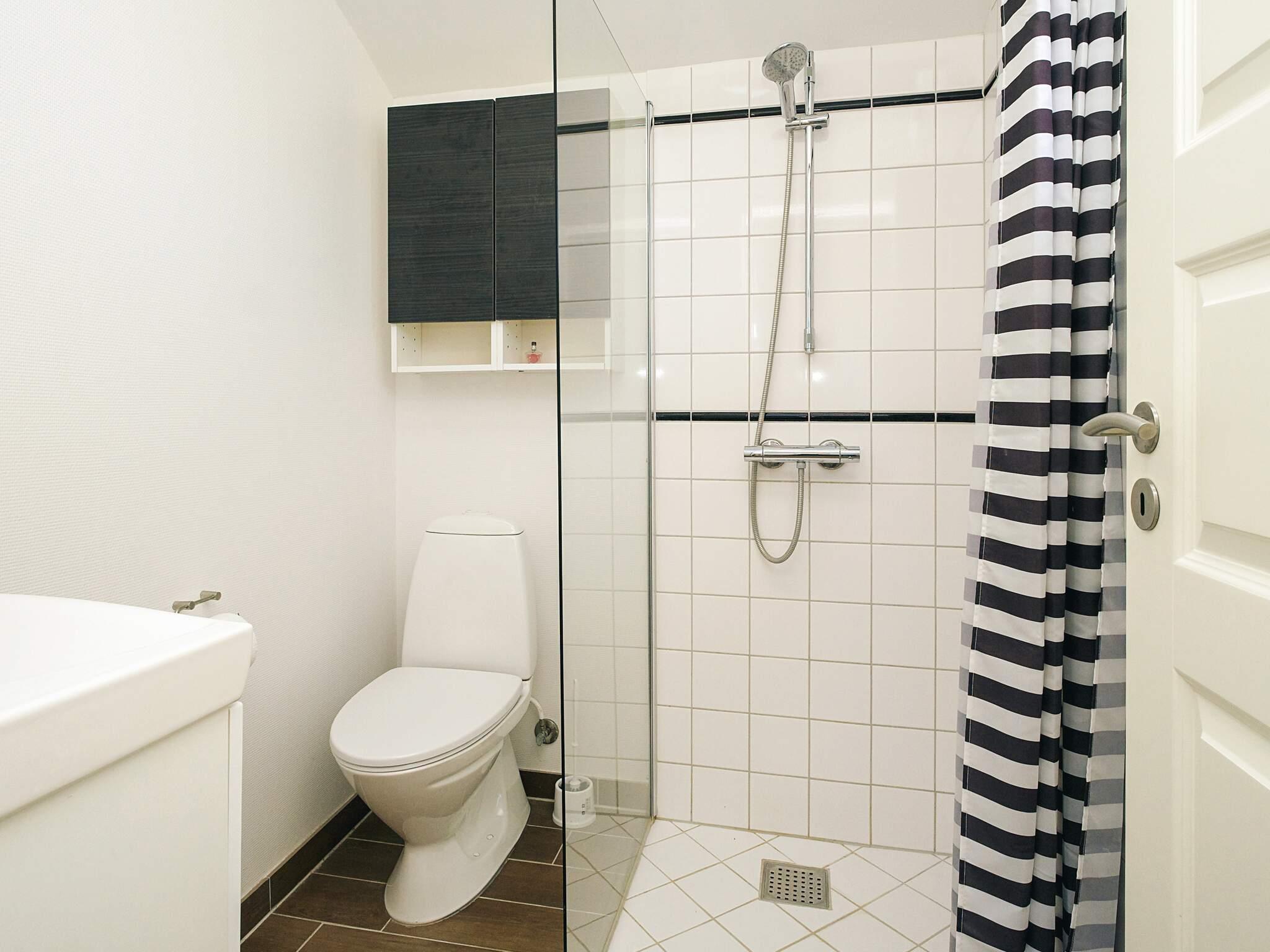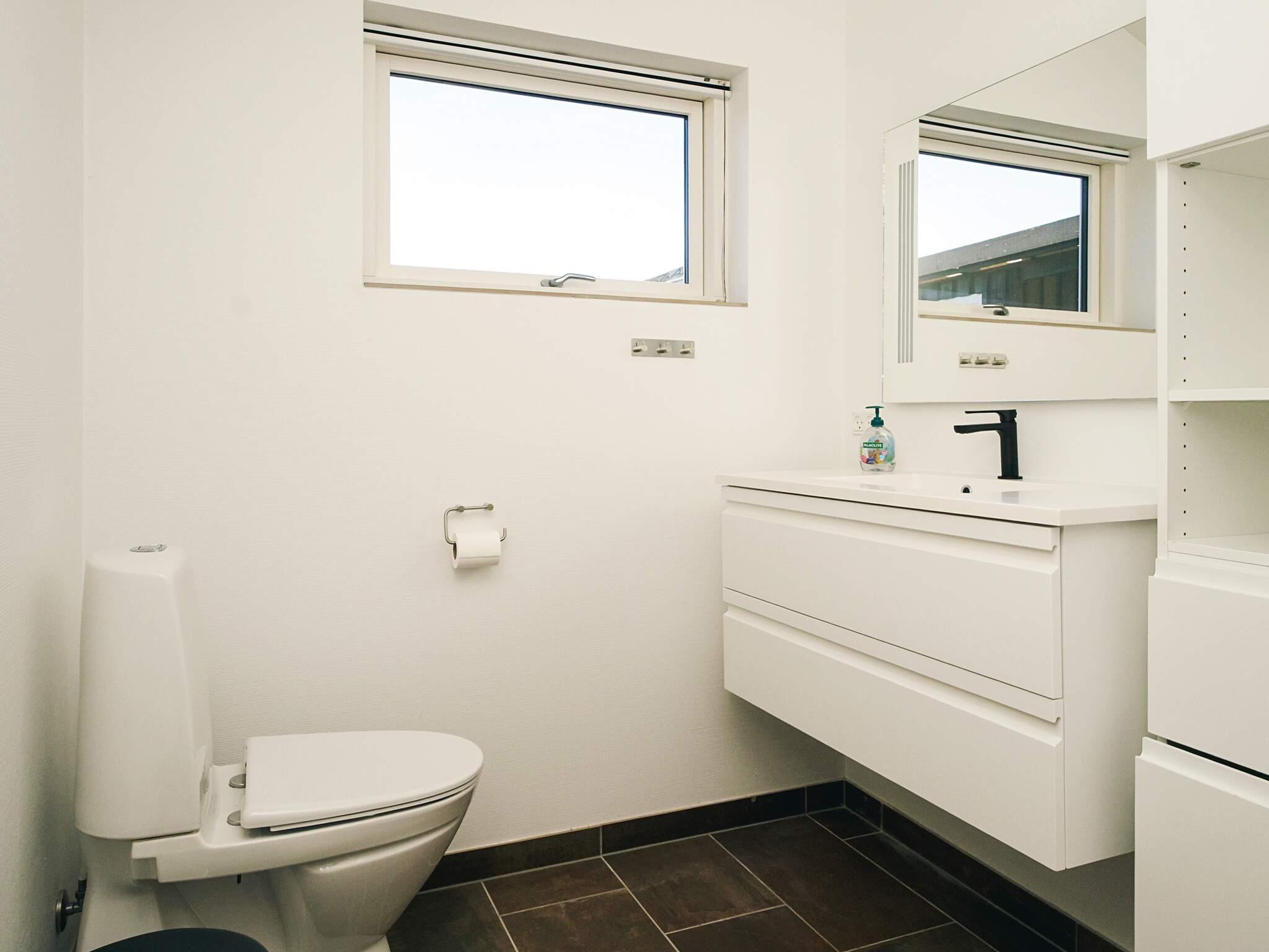 Feriehuset har endnu et badeværelse og køkken med spiseplads. Stuen ved siden af ??er et trin lavere og har udgang til terrassen og begge soveværelser; et større soveværelse med dobbeltseng og det andet med to enkeltsenge. Det større soveværelse har adgang til badeværelset og et praktisk bryggers med vaskemaskine. Klimavenlige varmepumper sikrer et økonomisk varmeforbrug.