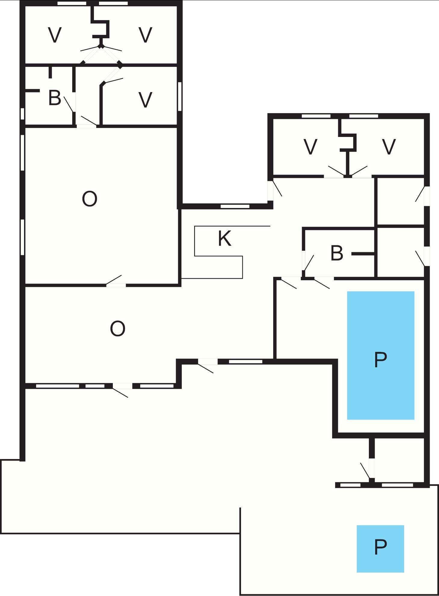 5 Soveværelser: (1DS)+(2S)+(2S)+(2S)+(1DS)