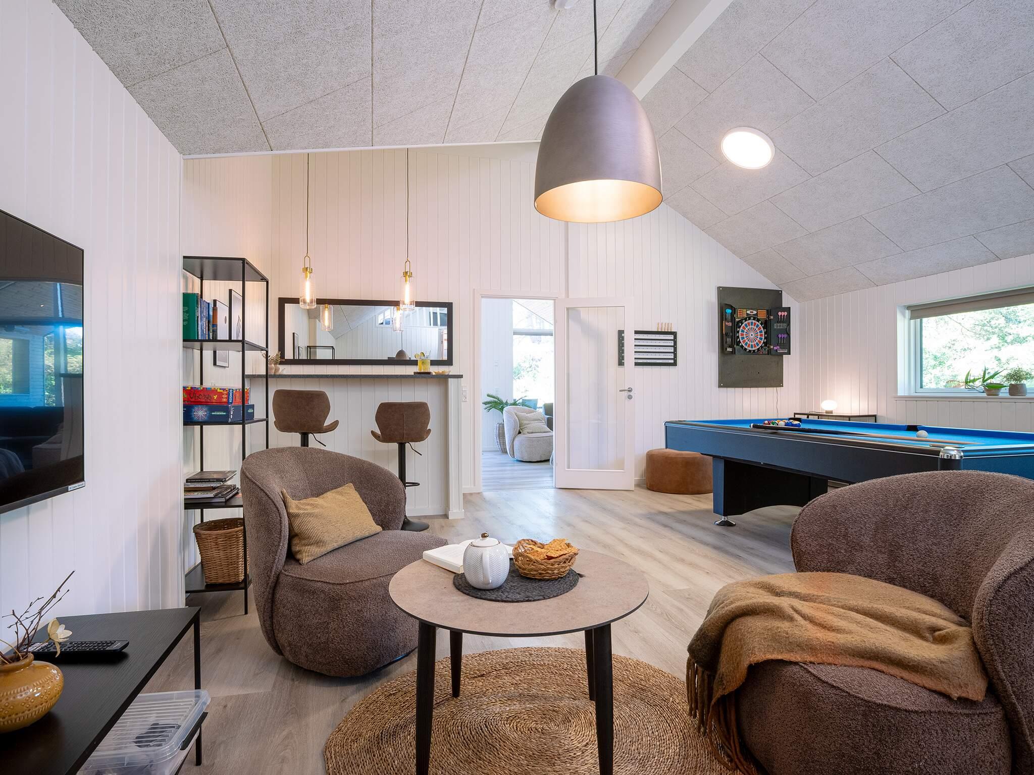 Leder du efter et sted at slappe af, er køkken-alrummet det perfekte sted med en dejlig, hyggelig hjørnesofa, der inviterer dig til at nyde filmaftener, spil eller fordybe dig i en god bog. Eller forkæl dig selv med en dukkert i det udendørs spabad efterfulgt af et besøg i saunaen.