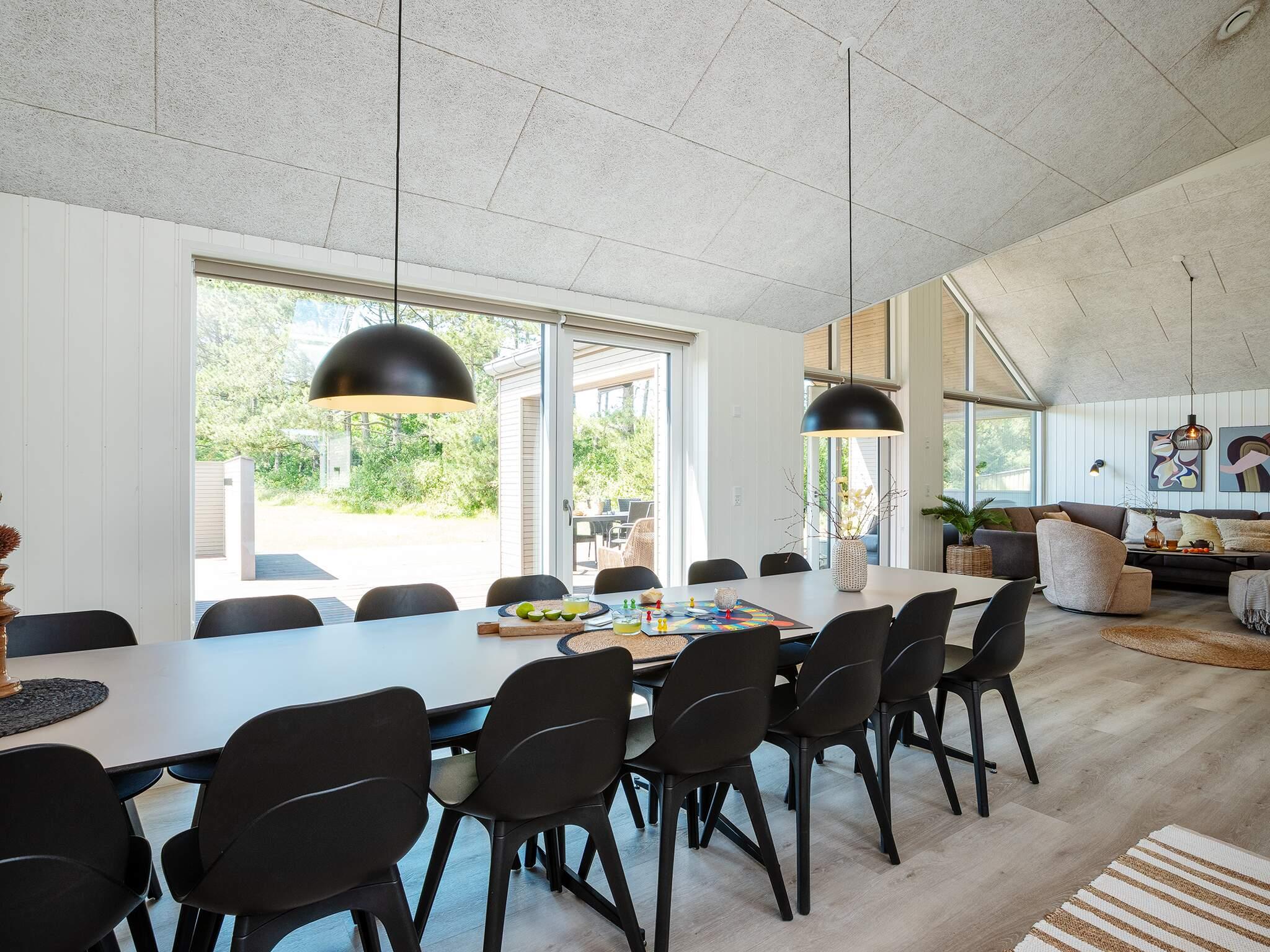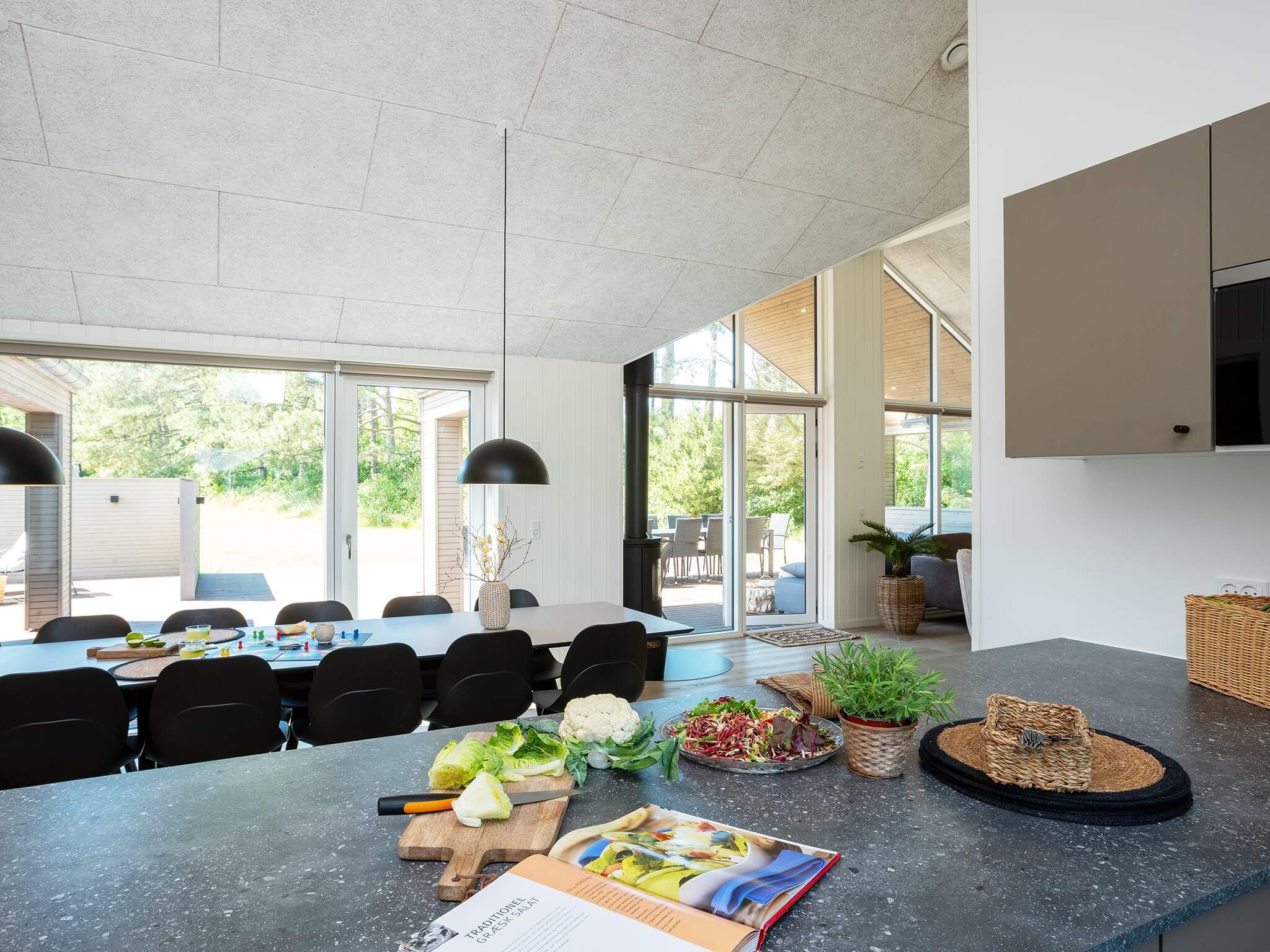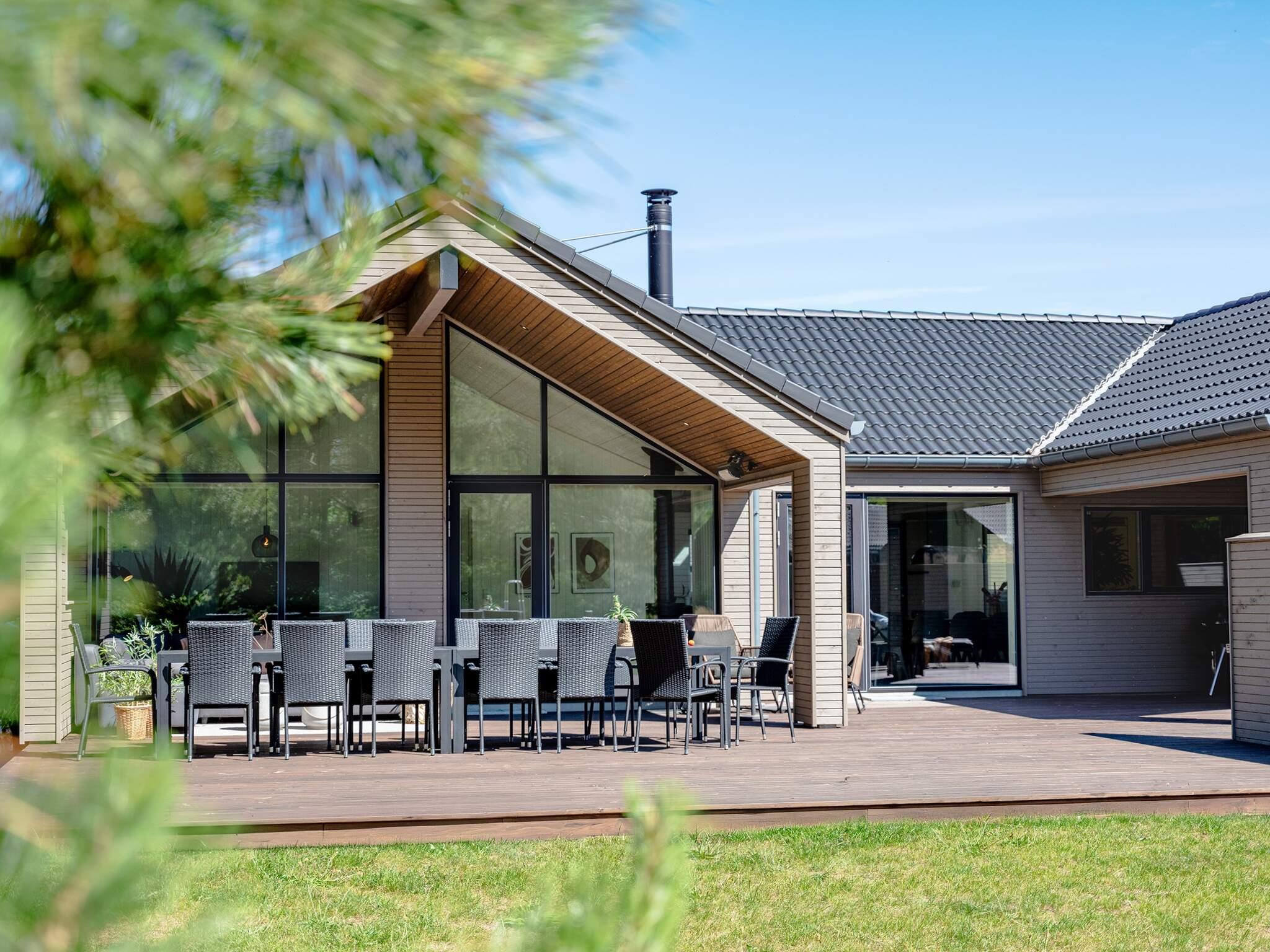 Køkkenet er fuldt udstyret, så I kan tilberede lækre måltider til hele gruppen - vil I gøre det ekstra specielt, kan I nyde et koldt glas vin fra vinkøleren. På den dejlige træterrasse kan du grille under åben himmel, mens du nyder det skønne overdækkede loungeområde, som også byder på en fantastisk hjørnesofa. Uanset om du foretrækker at spise indendørs eller udendørs, er der god plads til alle omkring de lange spiseborde.