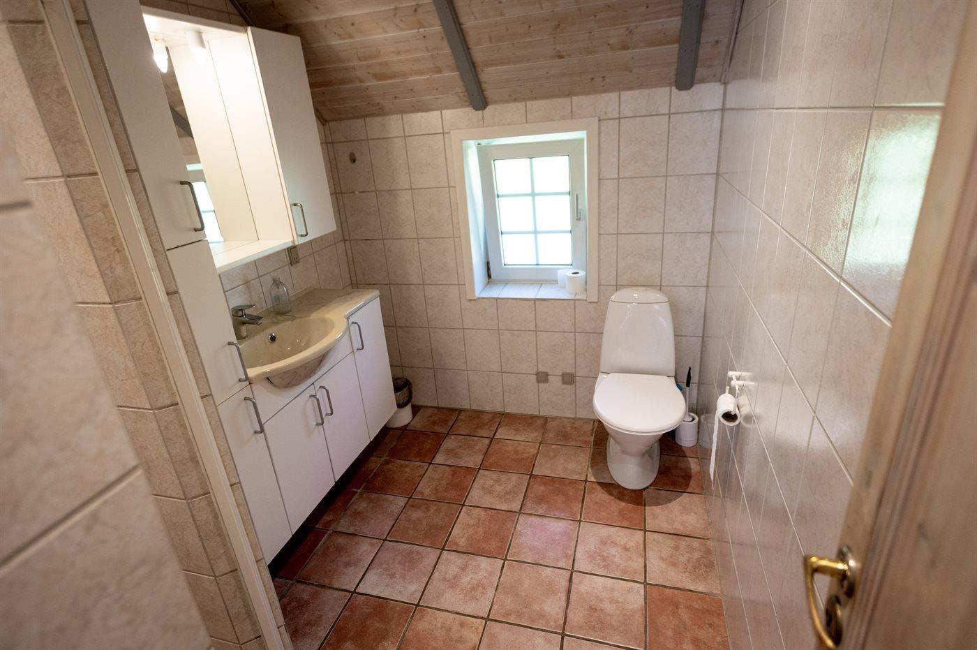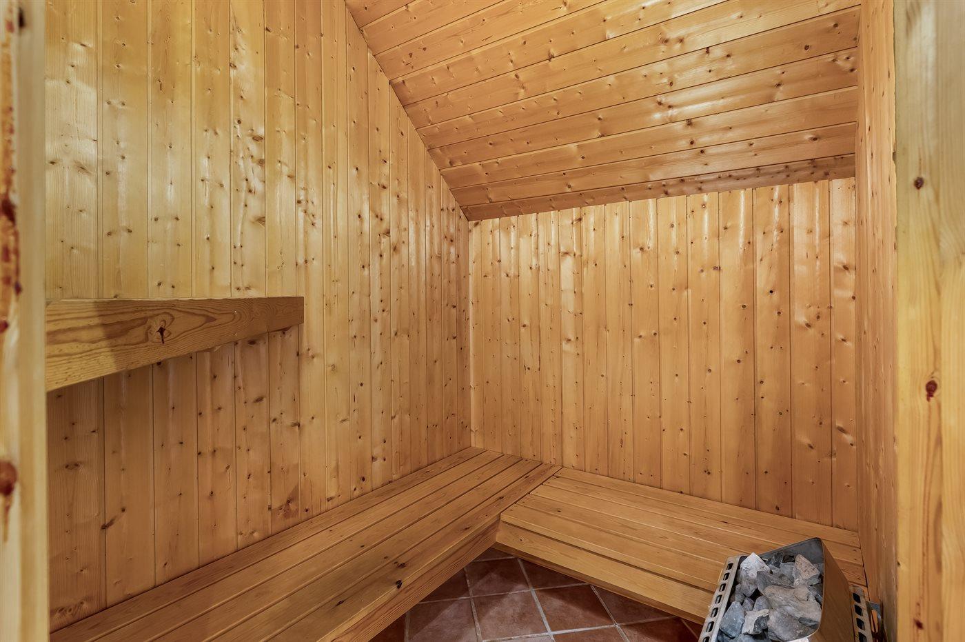 Der er 2 badeværelser med bruseniche og 2 toiletter. Der er gulvvarme på 2 badeværelser. Der er sauna og spabad for to personer i det store badeværelse.