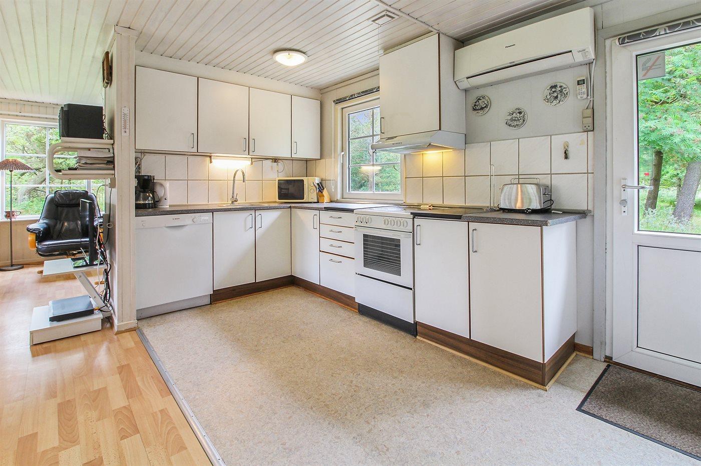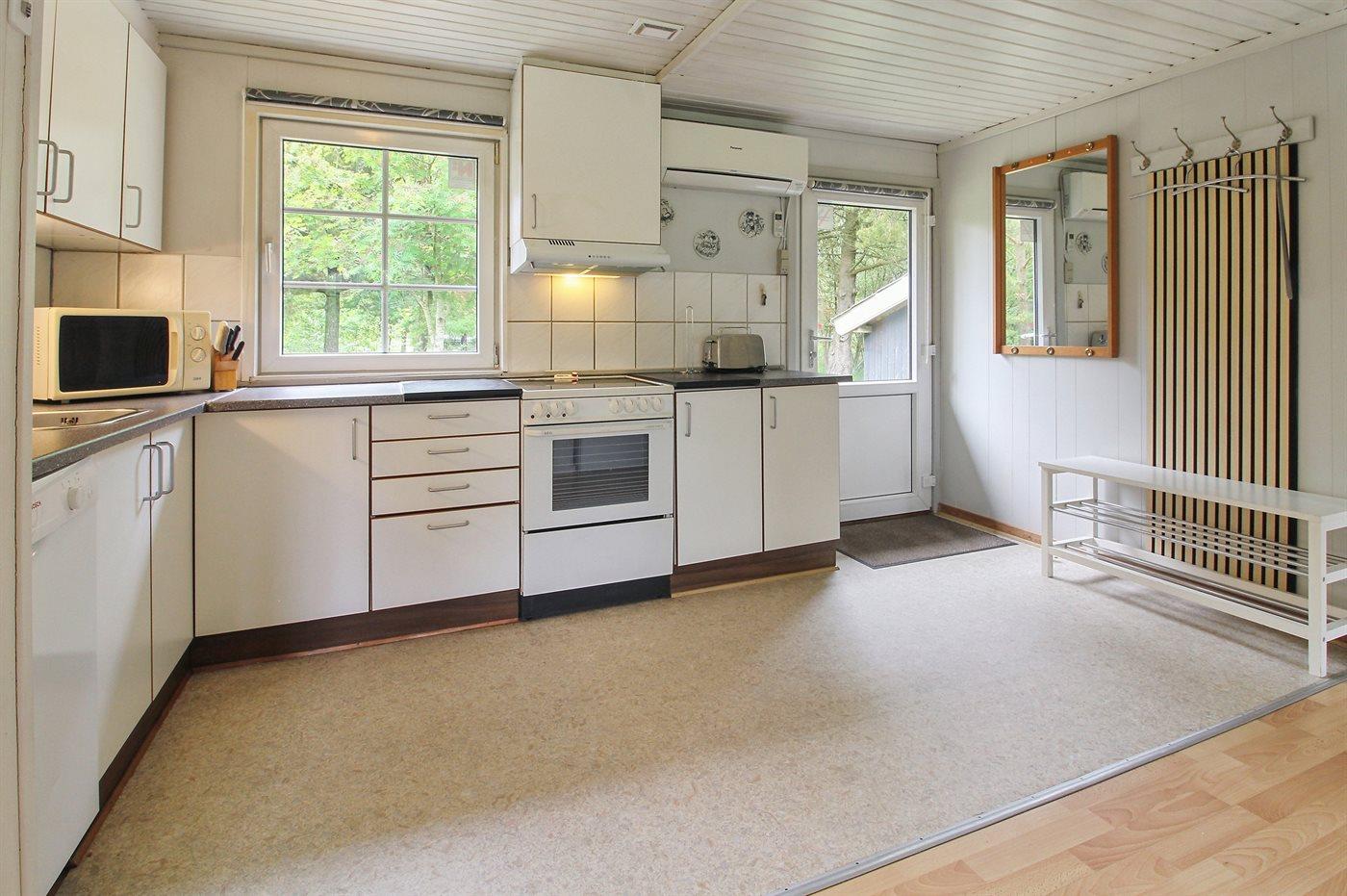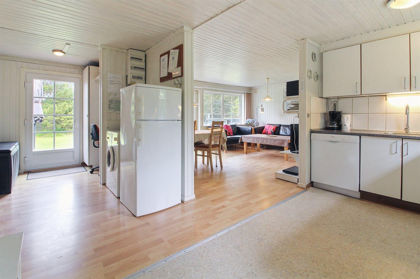 Køkkenet er udstyret med 1 køleskab. Der er 4 keramiske kogeplader, varmluftovn, mikrobølgeovn samt opvaskemaskine.