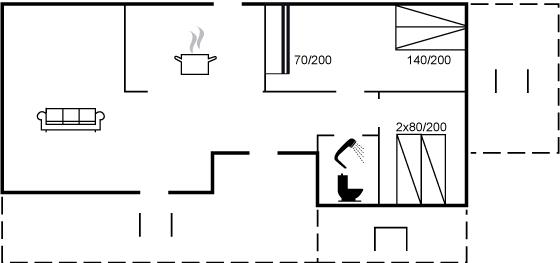 Der er i alt 2 soveværelser. Sovepladserne fordeler sig på: 4 sovepladser i dobbeltsenge. 2 sovepladser i køjeseng. Derudover er der 1 stk. barneseng.