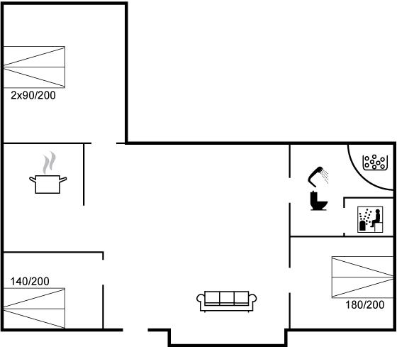 Der er i alt 3 soveværelser. Sovepladserne fordeler sig på: 6 sovepladser i dobbeltsenge. 2 sovepladser i enkeltsenge. 2 af disse sovepladser befinder sig på husets hems. Derudover er der 1 stk. barneseng.