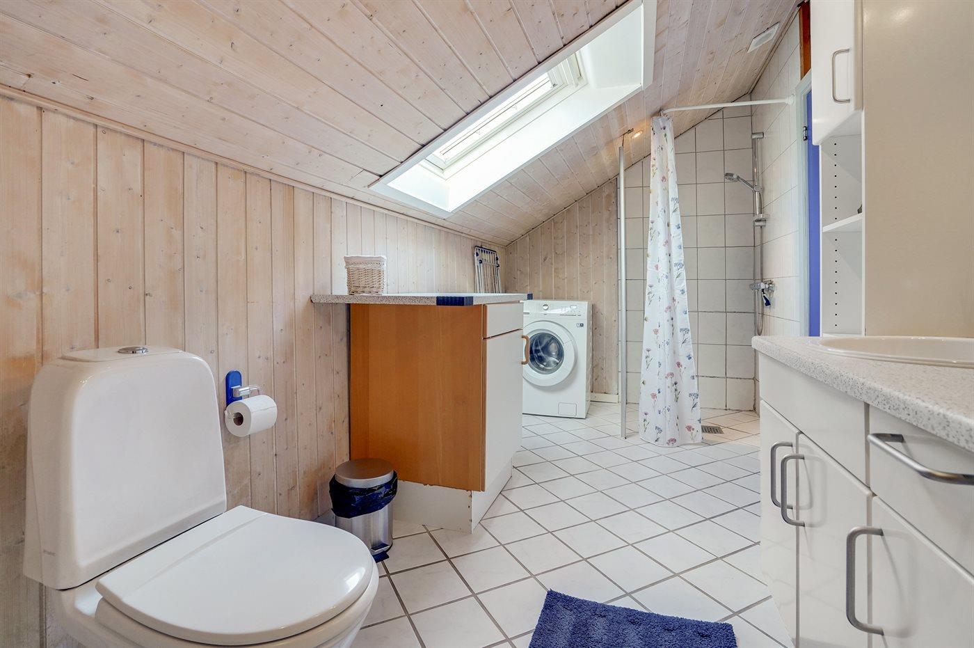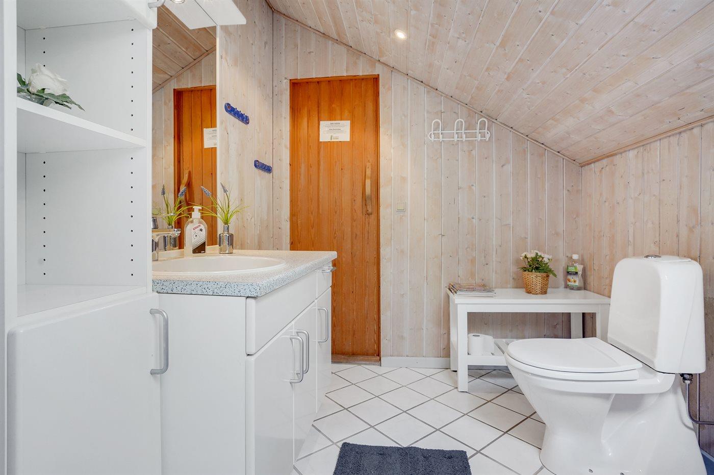 Der er 1 badeværelse med bruser og 1 toilet.. Der er gulvvarme på 1 badeværelse. I saunaen er der mulighed for afslapning.