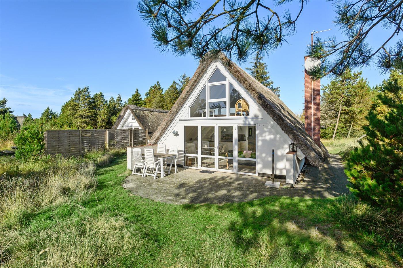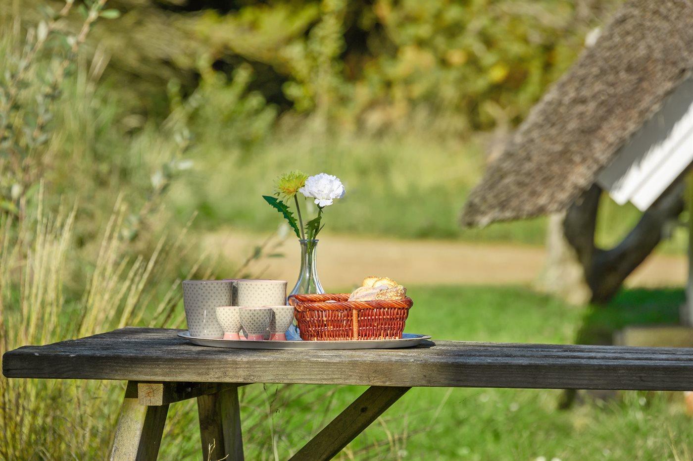 Hyggeligt sommerhus med stråtag på stor naturgrund nær Rømøs åbne landskaber.