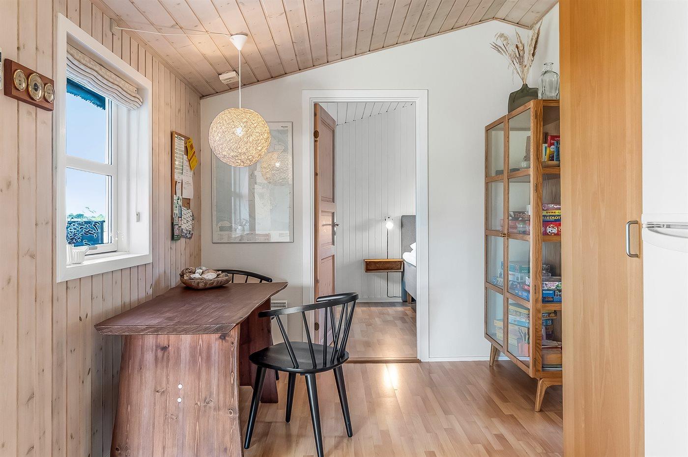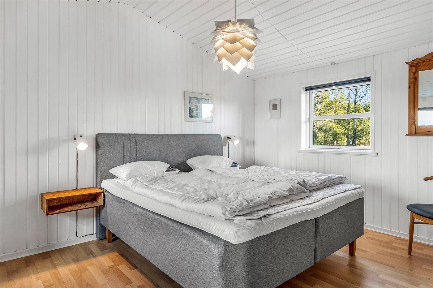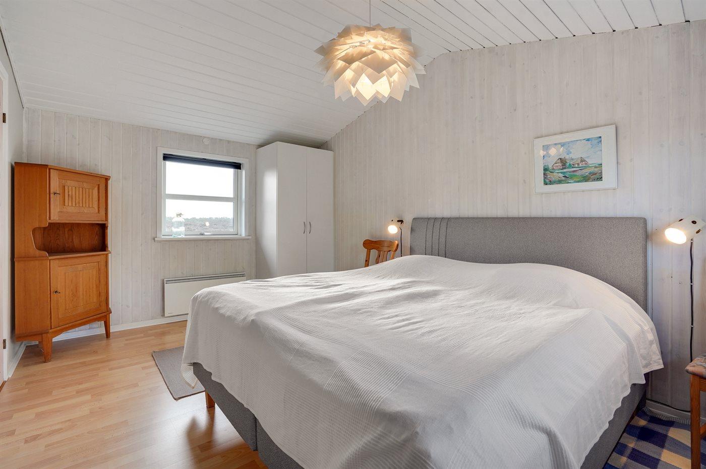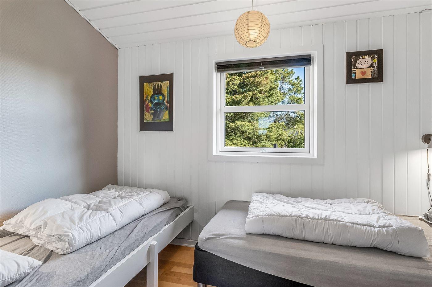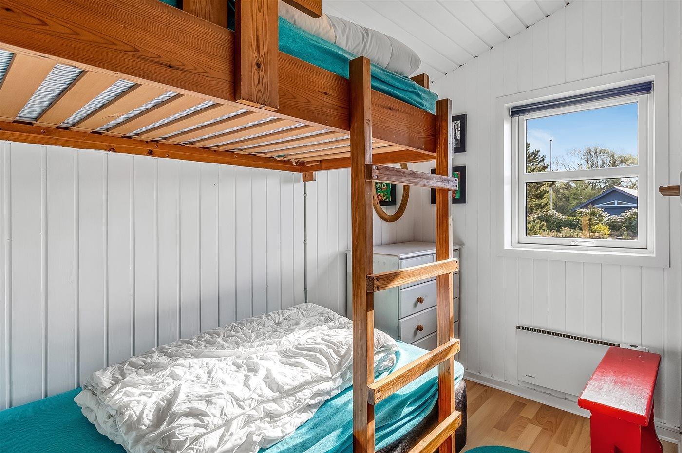 Der er i alt 3 soveværelser. Sovepladserne fordeler sig på: 2 sovepladser i dobbeltseng. 2 sovepladser i enkeltsenge. 2 sovepladser i køjeseng. Derudover er der 1 stk. barneseng.
