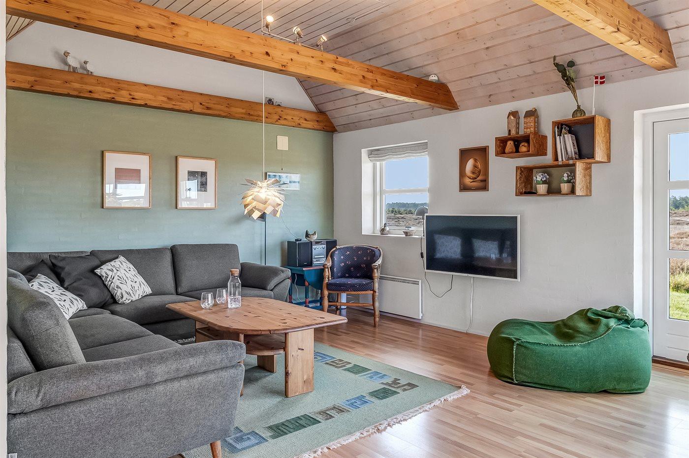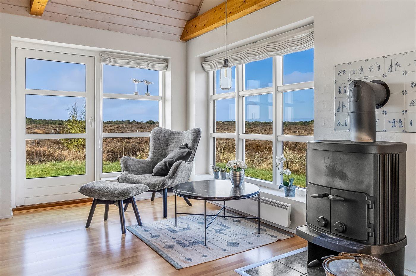 Et hyggeligt indrettet sommerhus, hvorfra der er den skønneste udsigt over hedeområdet.