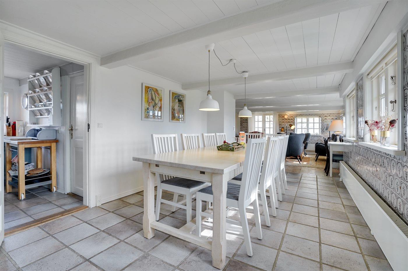 Er vejret ikke til ophold på husets terrasser, kan vi anbefale udestuen (ikke opvarmet). Huset er veludstyret og de mange faciliteter både inden- og udendørs, heriblandt en 7-pers. udendørs spa, gør huset populært og ideelt til alle ferieformer. Er man 2 familier med husdyr, så er dette hus en perfekt ramme for en fantastisk ferie på ferieøen Rømø.