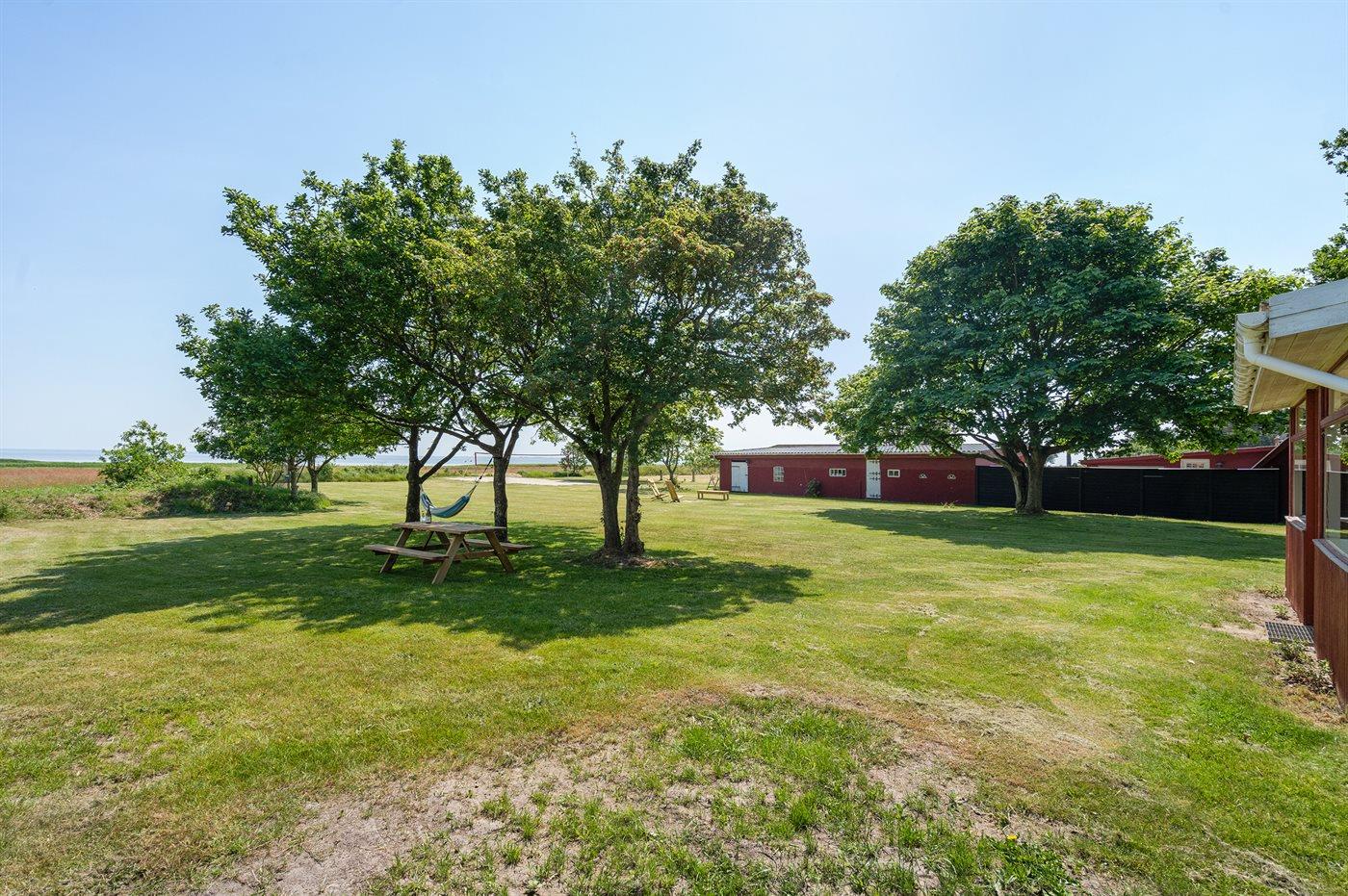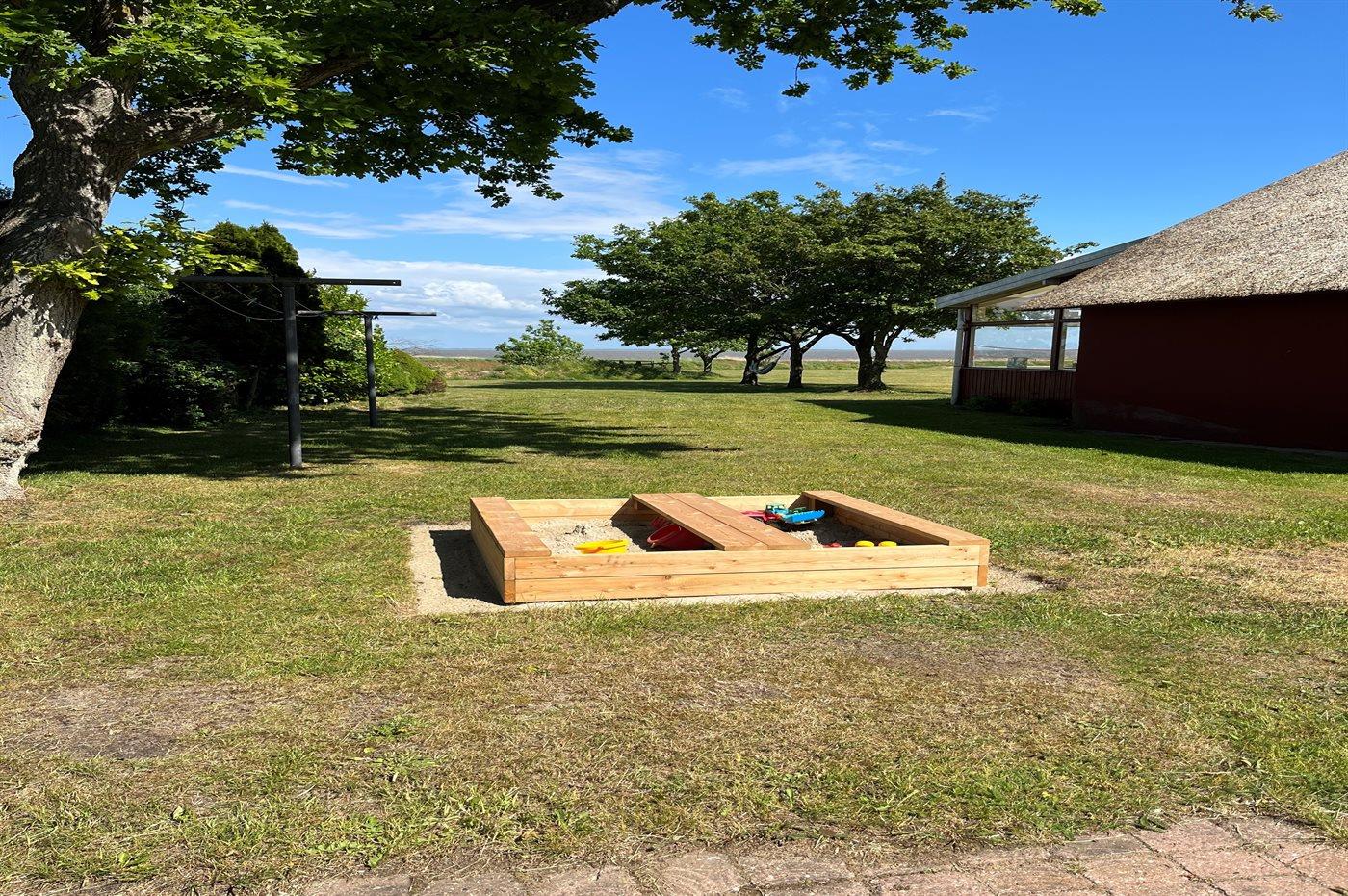 Ferieboligen er beliggende på en 2837 m² stor havegrund. Der er 4500 m til havet. Der er 250 m til Vadehavet. Nærmeste forretning er beliggende i en afstand af 1500 m. Der er en golfbane i en afstand af 5300 m. Til ferieboligen hører 30 m² terrasseareal. Ligeledes er der adgang til 24 m2 udestue (ikke opvarmet). Gynge. Sandkasse. Beachvolley. Fodboldmål. Der ligger en legeplads i en afstand af 500 m. Udendørs bruser, som kan benyttes hele året. Grill til rådighed. Der er installeret stik til opladning af elbil. CEE stik. Parkering ved ferieboligen.