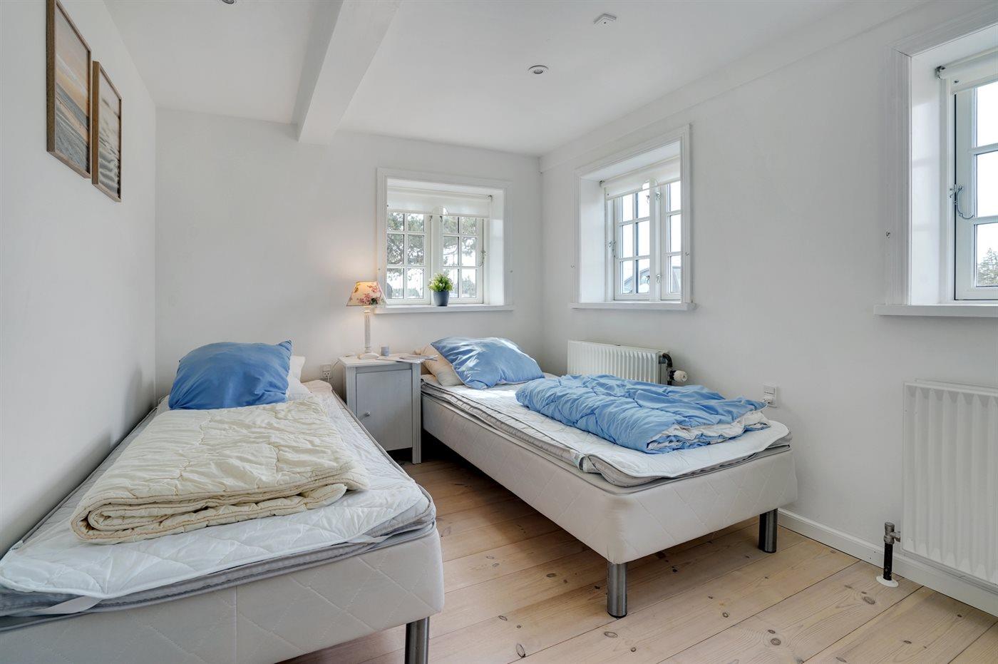 Der er i alt 5 soveværelser. Sovepladserne fordeler sig på: 4 sovepladser i dobbeltsenge. 6 sovepladser i enkeltsenge. Derudover er der 1 stk. barneseng.