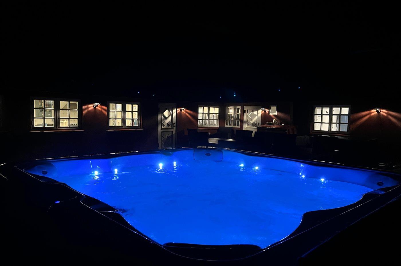 Der er mulighed for afslapning i udendørs standvandsspa til 7 personer.