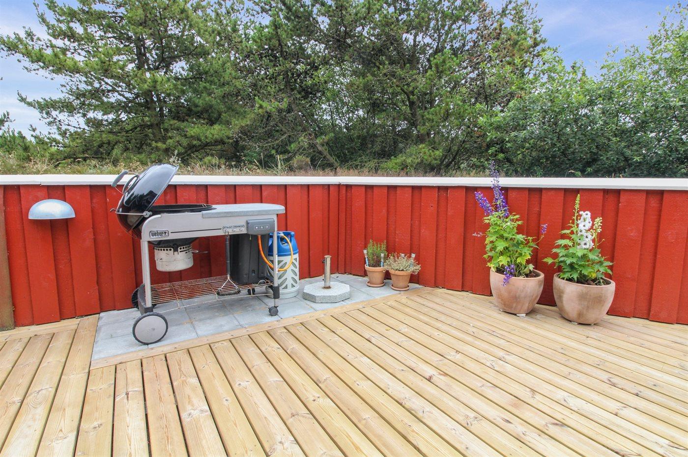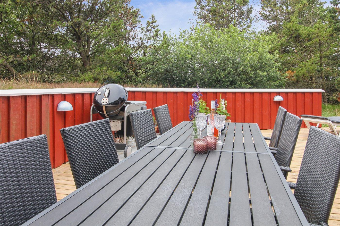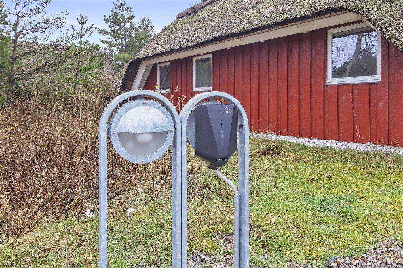 Ferieboligen er beliggende på en 2595 m² stor naturgrund. Der er 3200 m til havet. Der er 1600 m til Vadehavet. Nærmeste forretning er beliggende i en afstand af 5500 m. Til ferieboligen hører 80 m² terrasseareal. Der er redskabsrum. Gynge. Der er installeret stik til opladning af elbil. Type 2 stik. Med 11 kW ladeeffekt. Parkering ved ferieboligen.