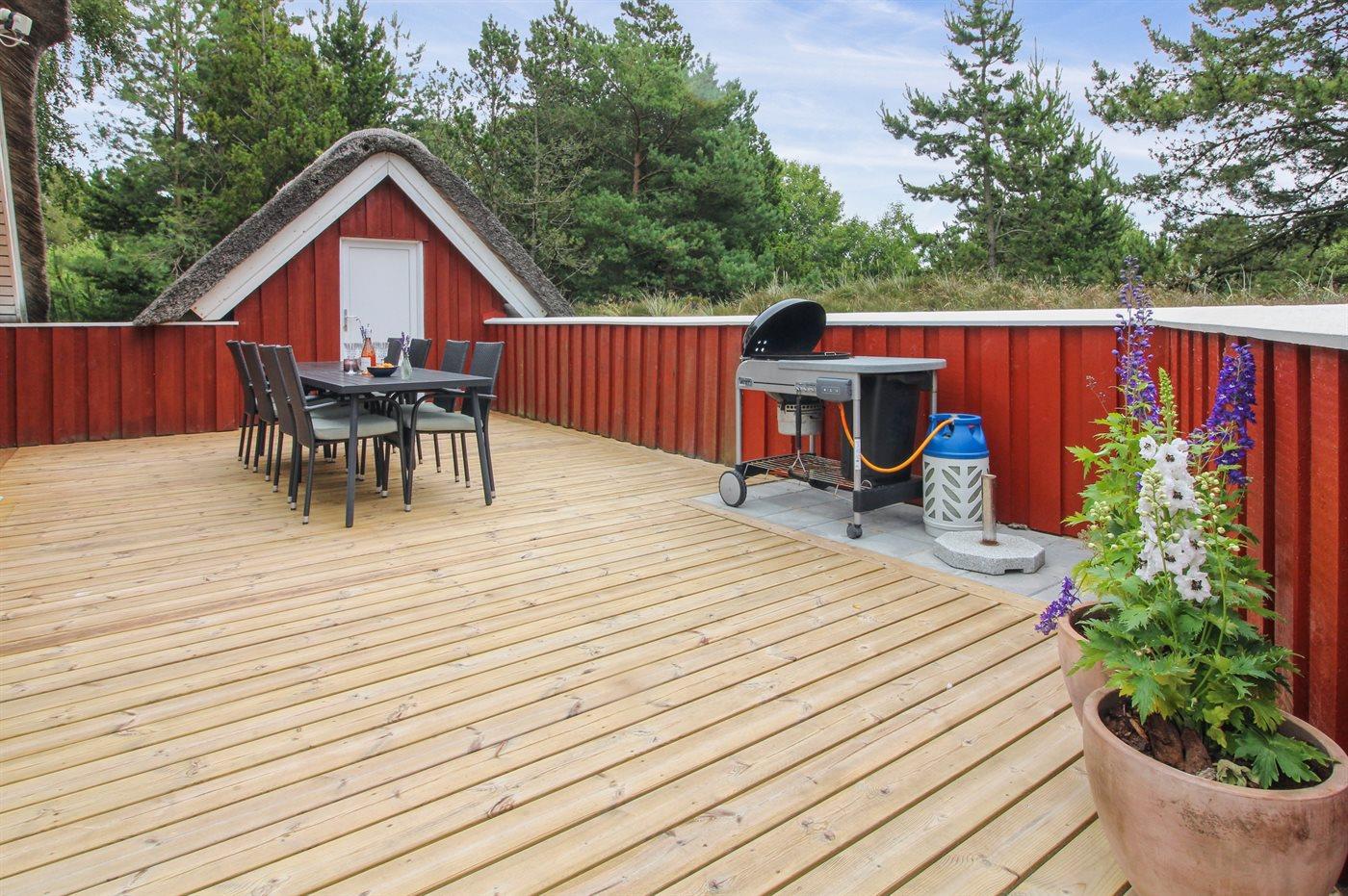 Dette dejlige sommerhus med stråtag beliggende på en meget stor grund på en rolig vej i Kongsmark. Ud mod de fredede naturarealer med et rigt dyreliv ligger en ugeneret, åben terrasse med en skøn udsigt.