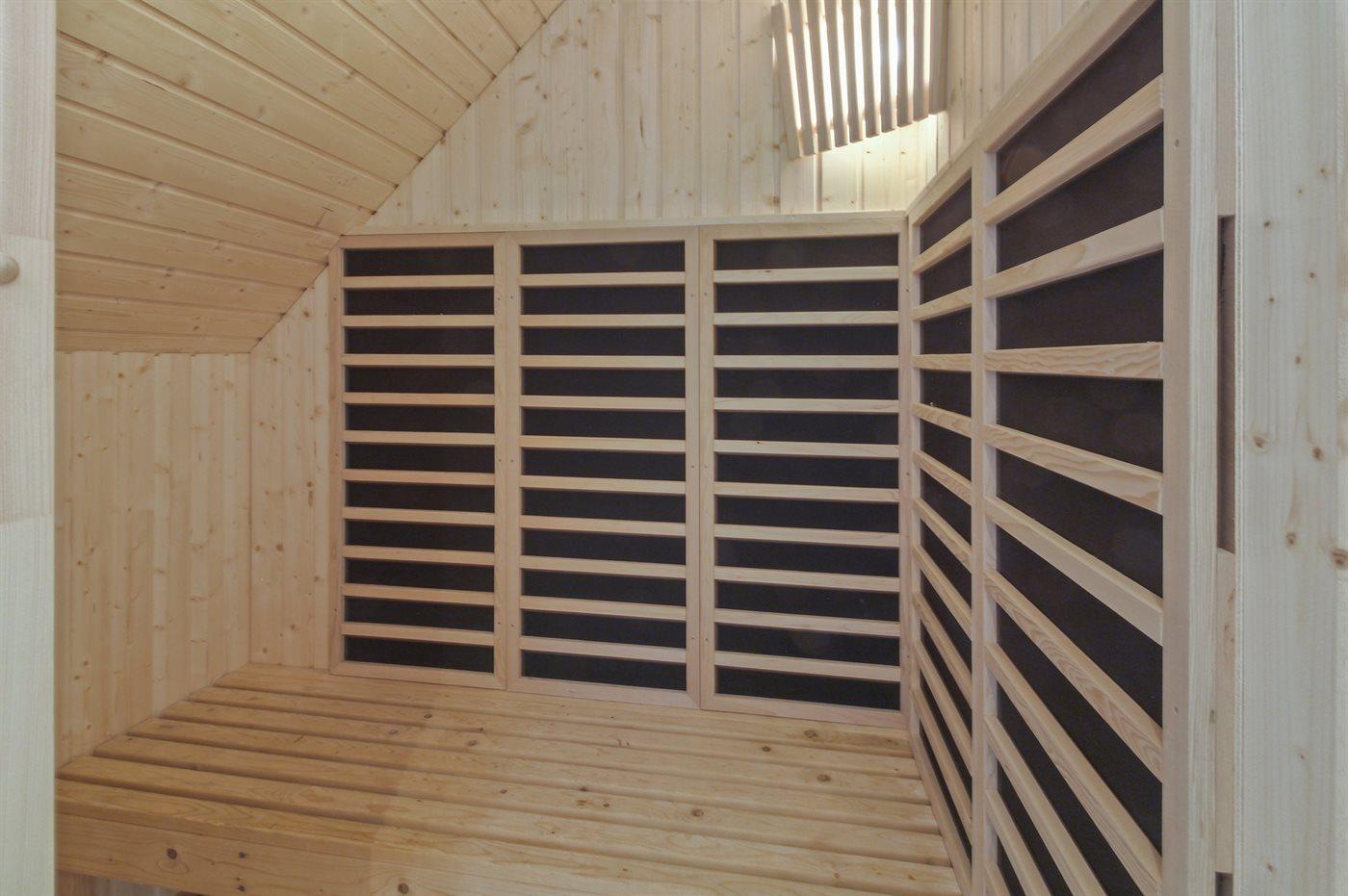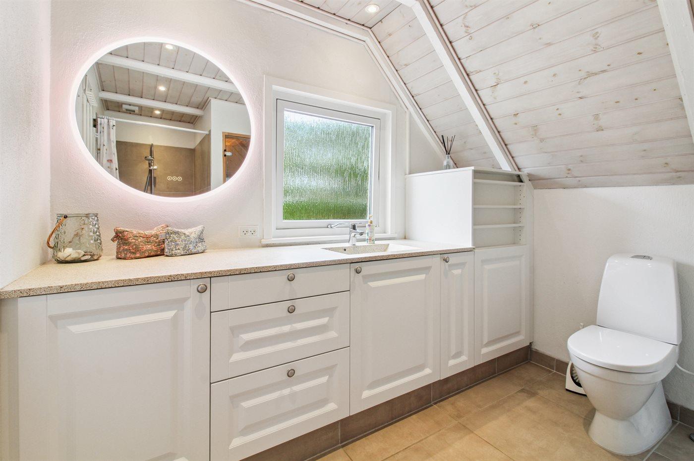 Der er 1 badeværelse med bruser og 2 toiletter, heraf 1 gæstetoilet. Der er gulvvarme på 1 badeværelse. I den infrarøde sauna er der mulighed for afslapning.