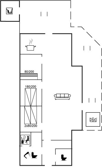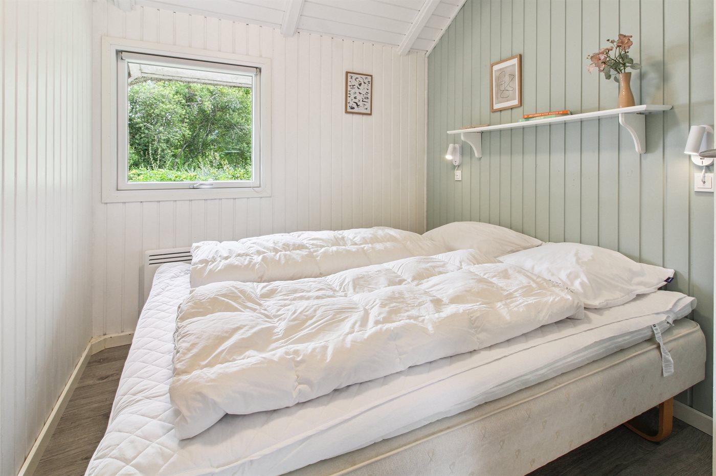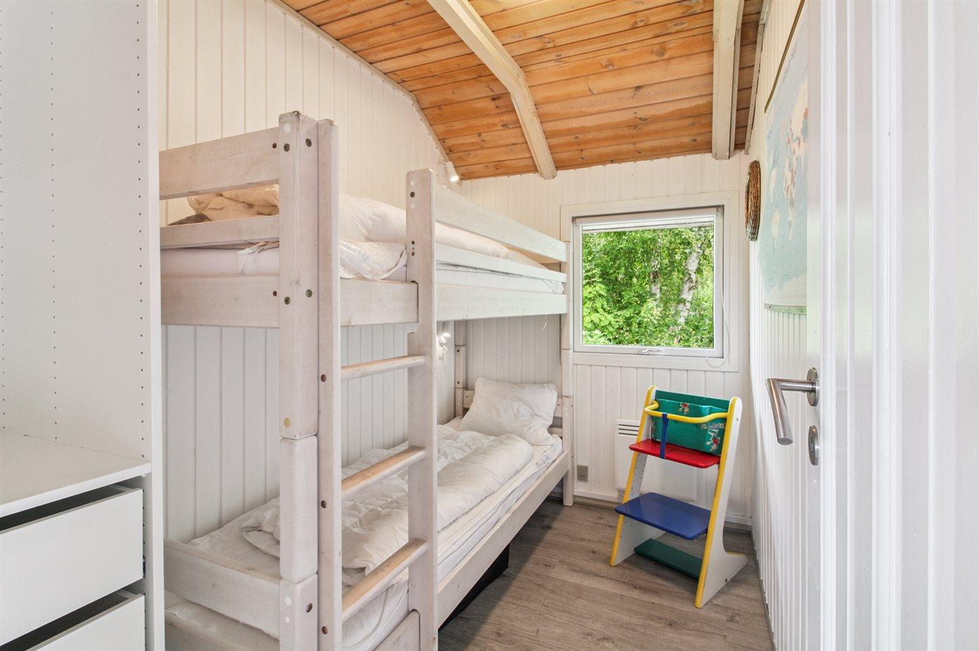 Der er i alt 3 soveværelser. Sovepladserne fordeler sig på: 4 sovepladser i dobbeltsenge. 2 sovepladser i køjeseng. Derudover er der 1 stk. barneseng.