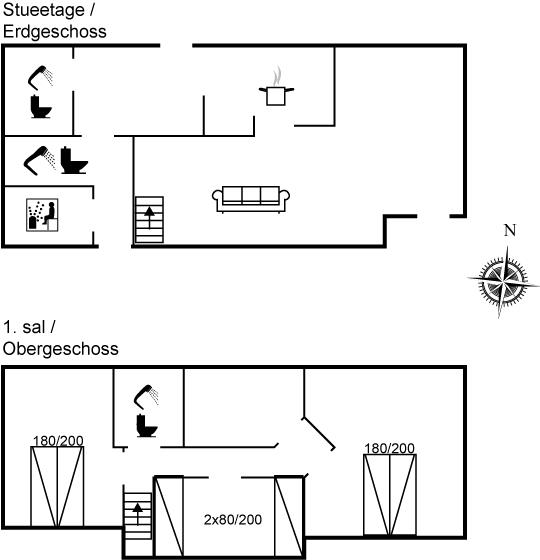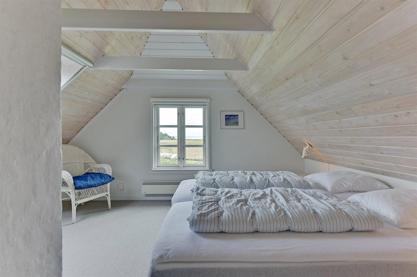 Der er i alt 3 soveværelser. Sovepladserne fordeler sig på: 4 sovepladser i dobbeltsenge. 2 sovepladser i enkeltsenge.