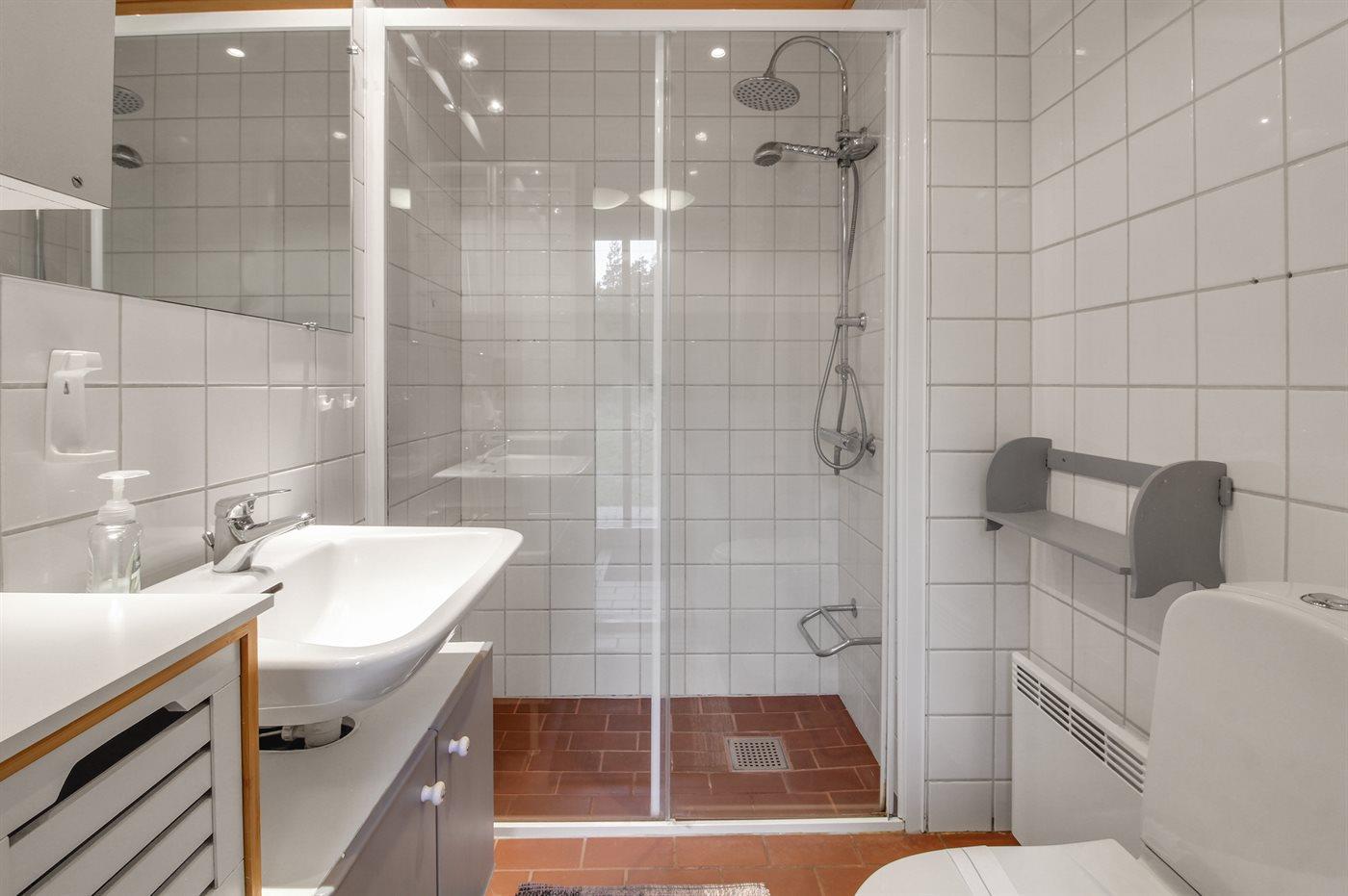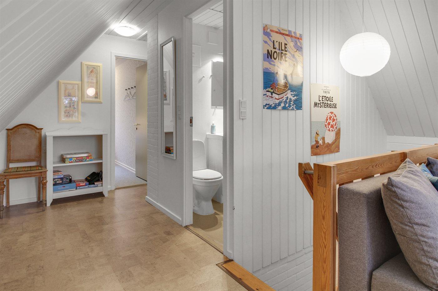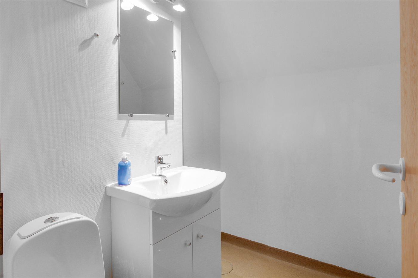 I stueplan er der badeværelse med bruser og toilet. På 1. sal er der gæstetoilet.