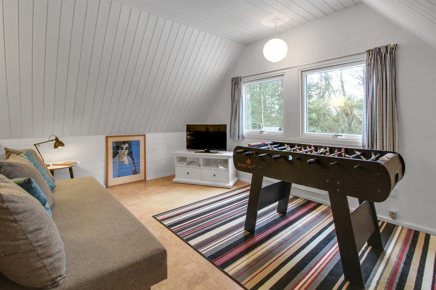 Til familiens unge medlemmer er der på første sal indrettet opholdsstue med sovesofa, bordfodbold, hard-wired IT opkobling samt TV med Wii spillekonsol.