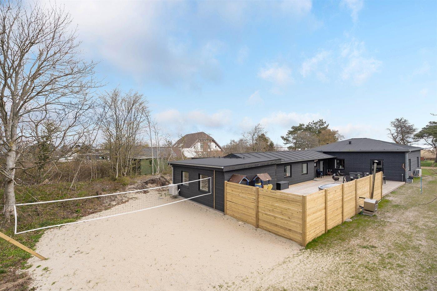 Ferieboligen er beliggende på en 1732 m² stor havegrund. Der er 4500 m til havet. Der er 200 m til Vadehavet. Nærmeste forretning er beliggende i en afstand af 1300 m. Til ferieboligen hører 100 m² terrasseareal. Sandkasse. Legetårn. Rutchebane. Badminton/volleyball bane. Grill til rådighed. Parkering ved ferieboligen.