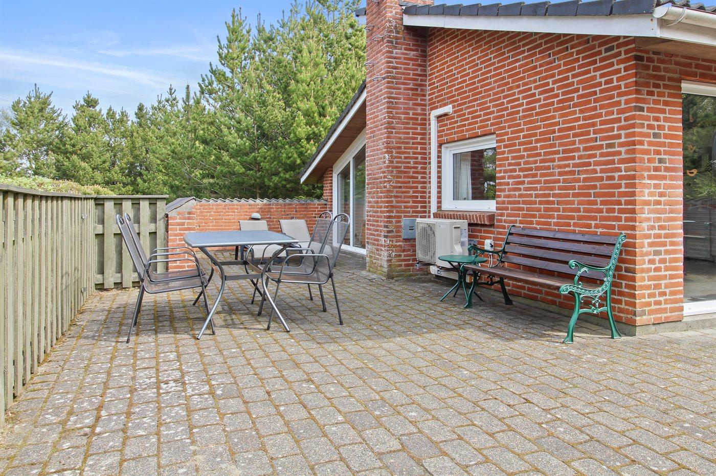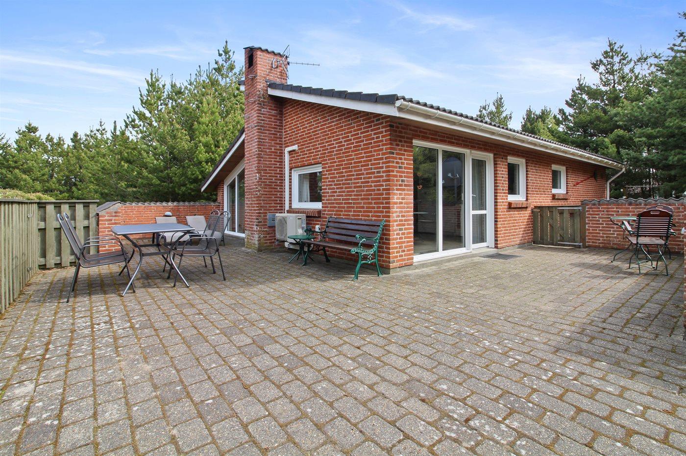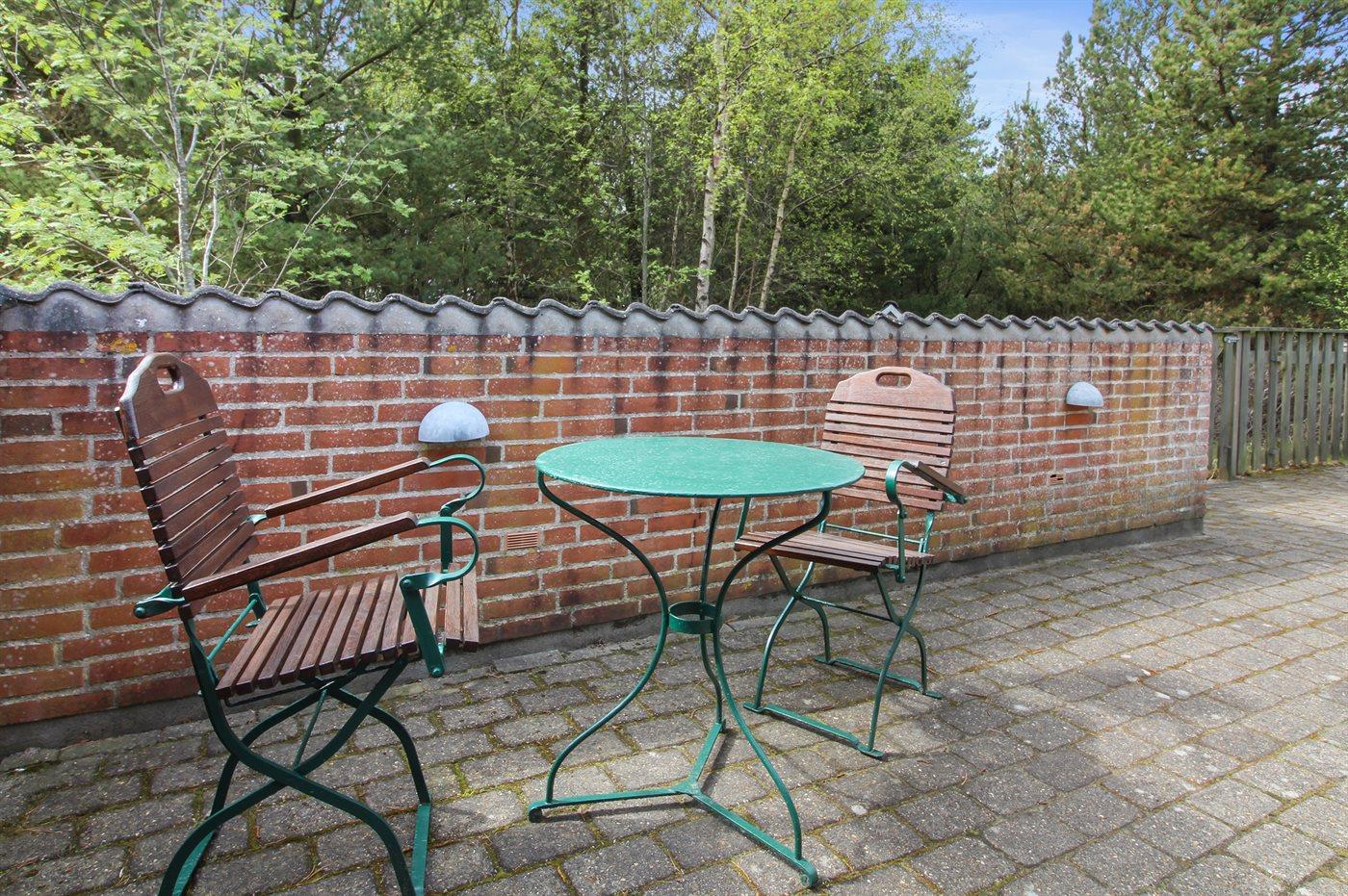 Dette sommerhus ligger for enden af en blind vej på en meget stor grund ud mod de fredede arealer med et rigt dyreliv. Til huset hører en skøn, lukket, syd- og vestvendt terrasse med udsigt over heden.