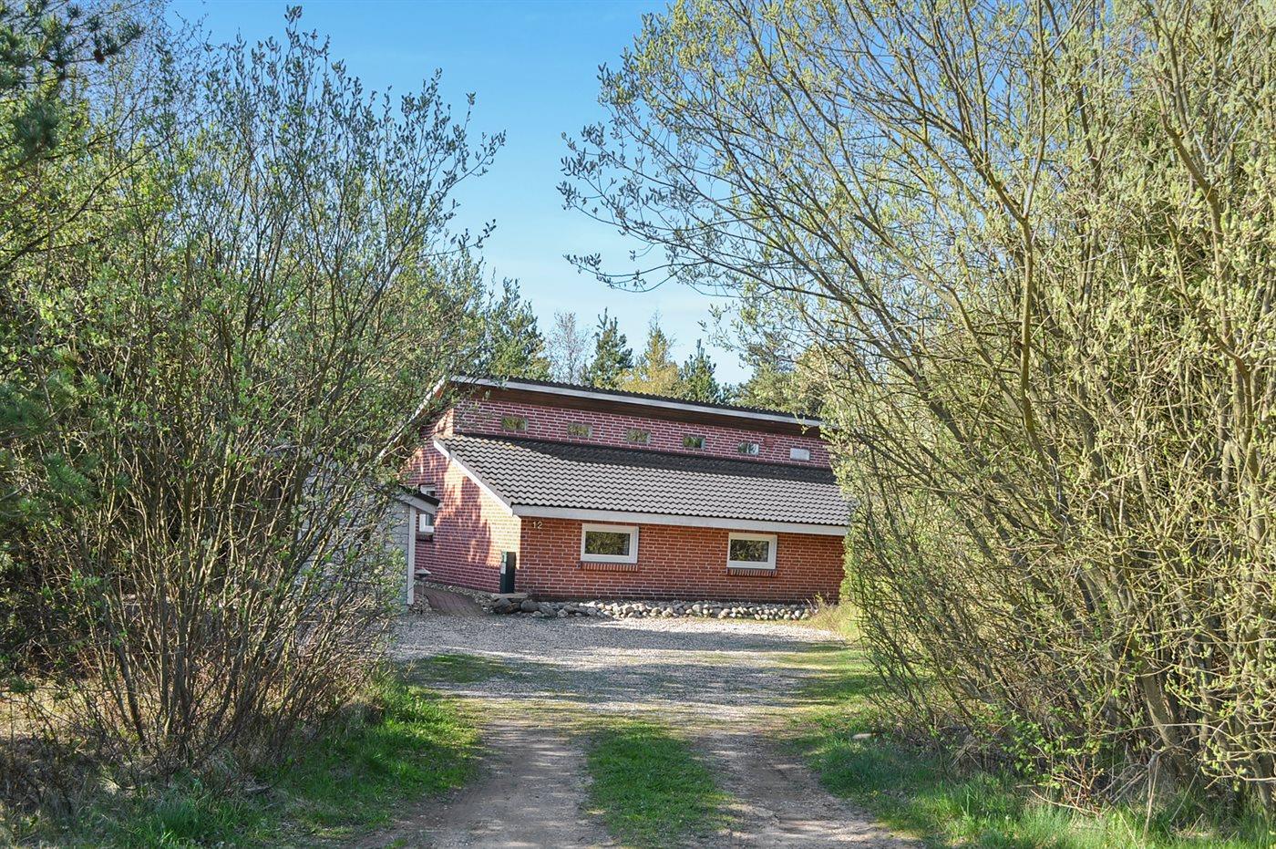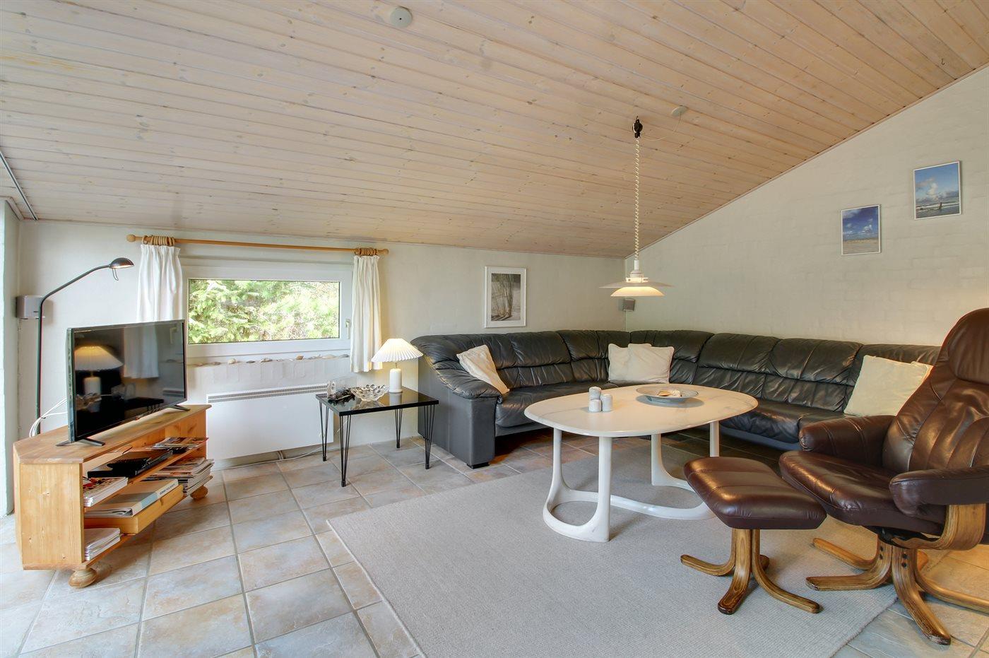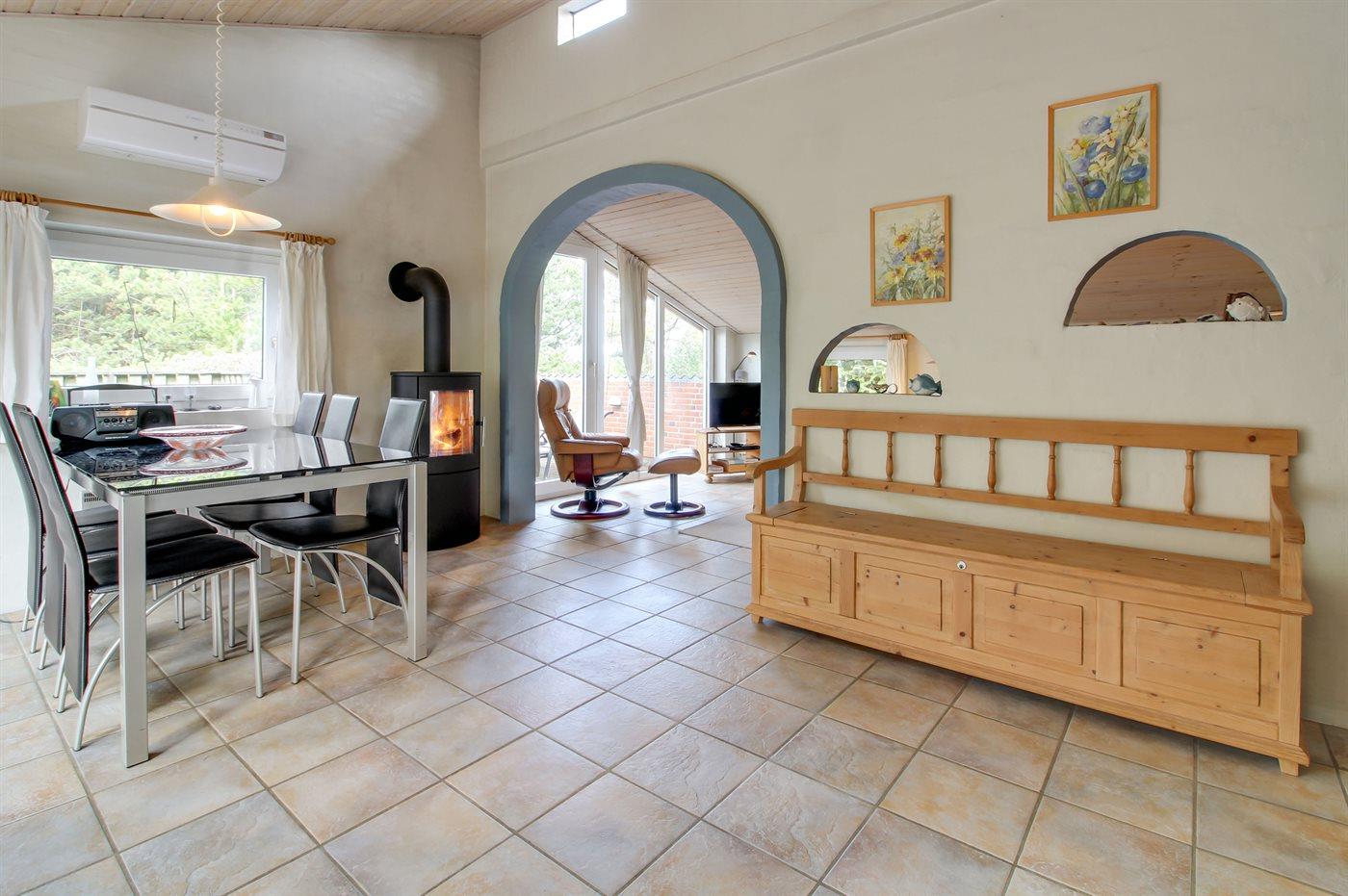 Dette sommerhus ligger for enden af en blind vej på en meget stor grund ud mod de fredede arealer med et rigt dyreliv. Til huset hører en skøn, lukket, syd- og vestvendt terrasse med udsigt over heden.