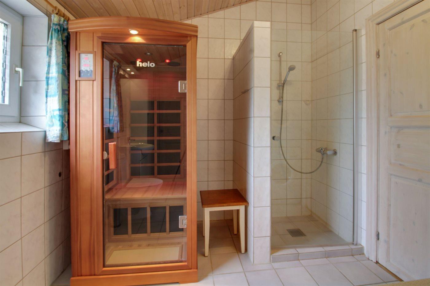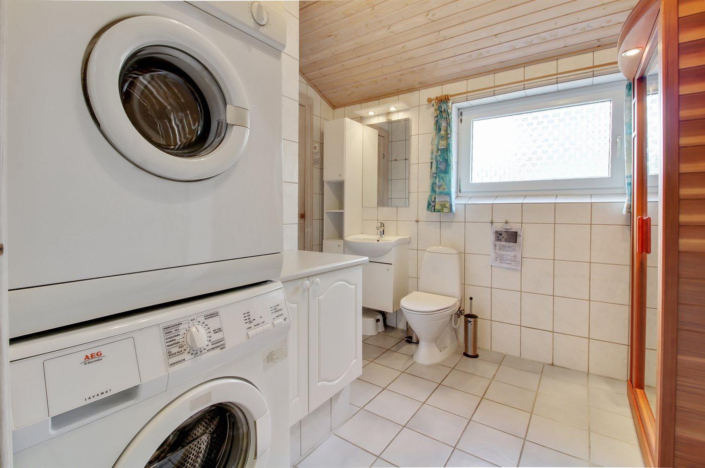 Der er 1 badeværelse med bruser og 1 toilet.. Der er gulvvarme på 1 badeværelse. I saunaen er der mulighed for afslapning. I den infrarøde sauna er der mulighed for afslapning.