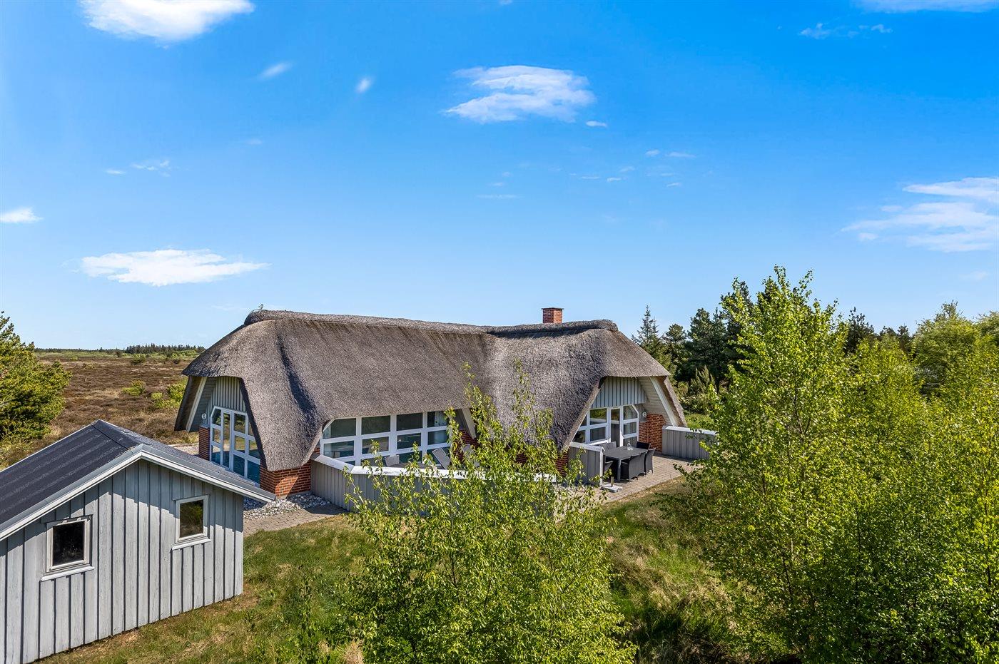 Rummeligt sommerhus på lynggrund ved fredet naturområde med pool, sauna og spabad nær Vadehavet.