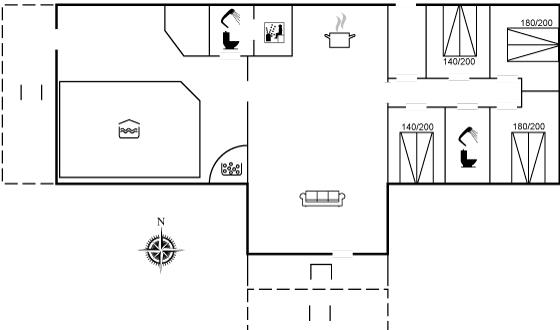 Der er i alt 4 soveværelser. Sovepladserne fordeler sig på: 8 sovepladser i dobbeltsenge.