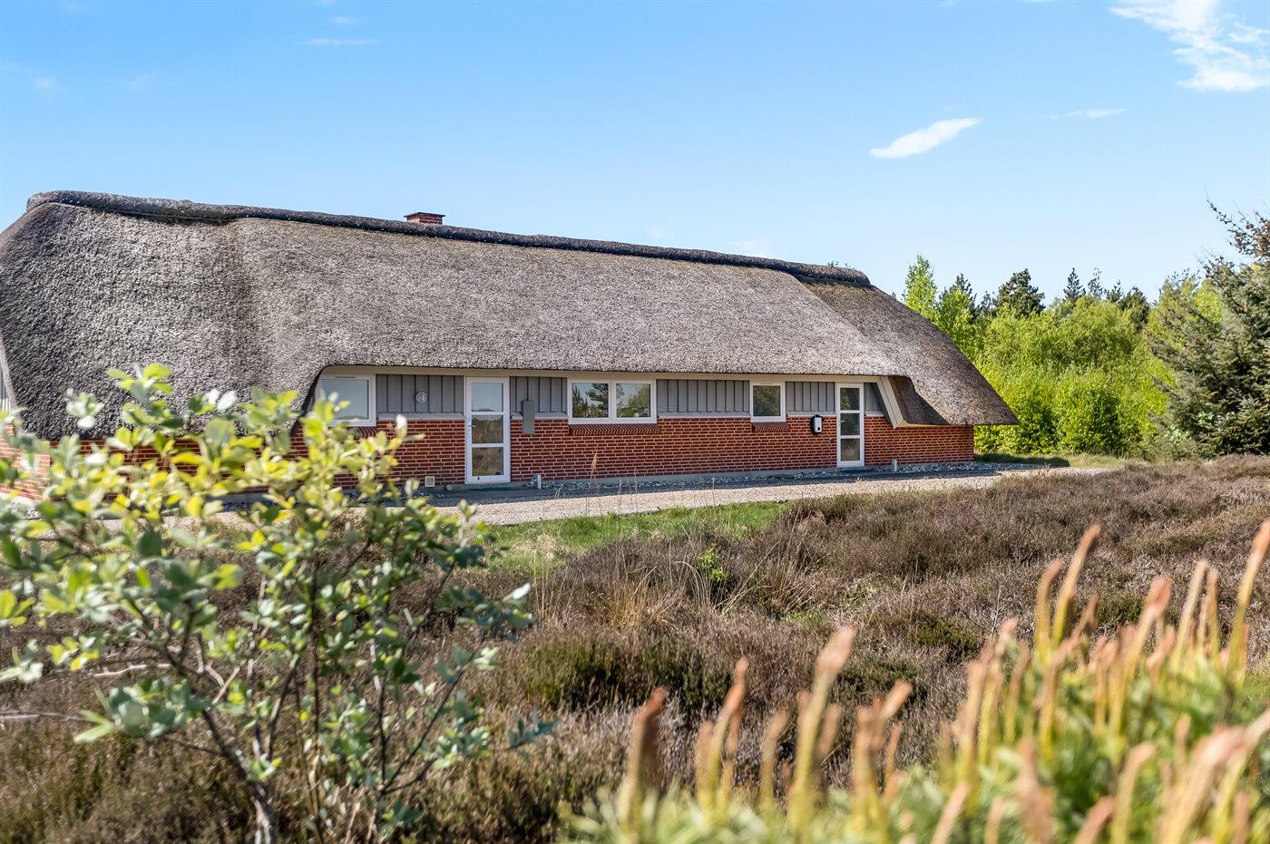 Dette rummelige sommerhus ligger på en lynggrund, som grænser op til et fredet naturområde – for enden af en lukket vej.